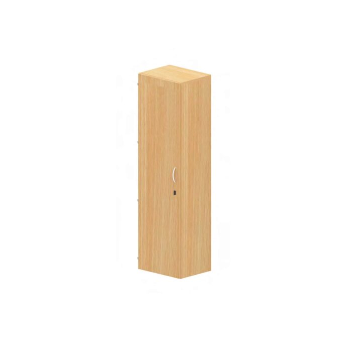 Hergestellt in hochwertiger Korpusbauweise, besticht der Garderobenschrank durch sein elegantes Buche-Dekor mit passender ABS-Kante. Die aufliegenden, abschließbaren Türen und matt gebürsteten Segmentbogengriffe verleihen dem Schrank eine moderne und ansprechende Optik. Der stabile Sockel und die Sichtrückwand garantieren Langlebigkeit und Standfestigkeit.