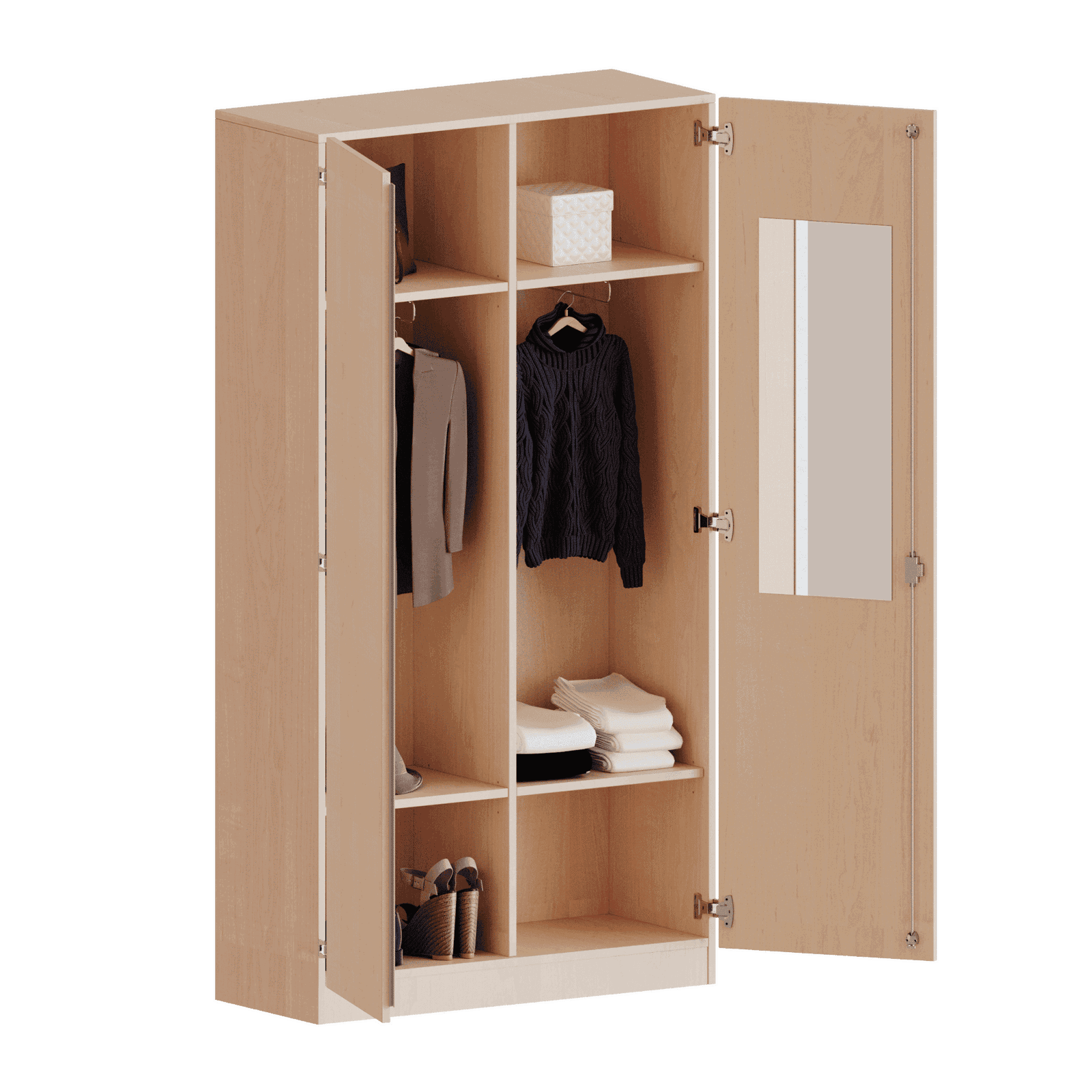 Garderobenschrank mit Spiegel und Garderobenstange, beide Seiten Garderobe – Serie evo180 für Kitas & Kindergärten