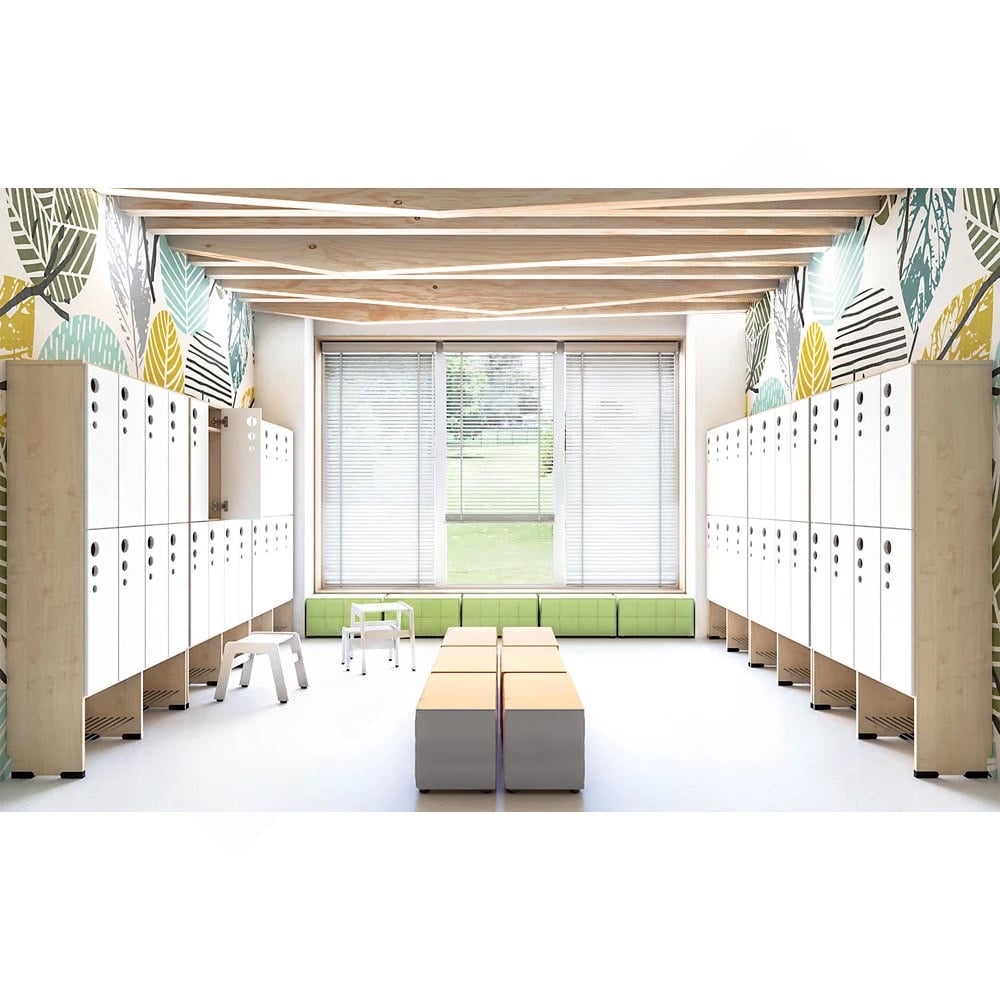 Geben Sie den Kindern mit dem Garderobenschrank Tropfen einen sicheren Platz für ihre Kleidung und schaffen Sie eine fröhliche Atmosphäre im Eingangsbereich Ihrer Einrichtung.