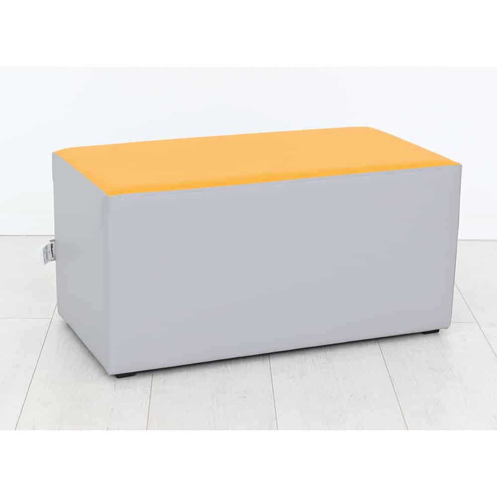 Was unseren Garderobensitz besonders hervorhebt, sind die farbenfrohen Sitzflächen. Wählen Sie aus sechs verschiedenen Farben: Gelb, Orange, Flieder, Blau, Limone oder Graphit. Die seitlichen Grautöne verleihen dem Sitz eine elegante Optik und machen ihn zu einem stilvollen Highlight in jedem Raum.