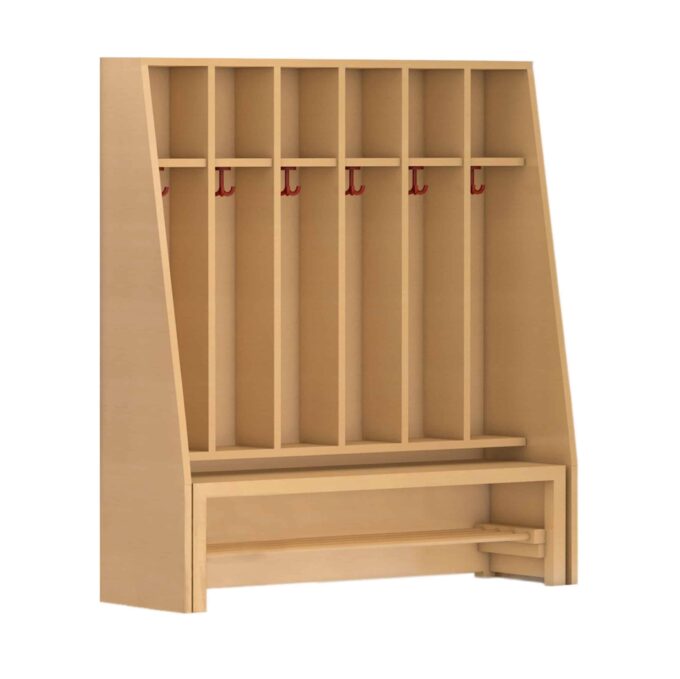 Unser Garderobenspind mit durchgehenden Mittelwänden, Ablage und Dreifachhaken bietet eine strukturierte und gut organisierte Aufbewahrungslösung für Kindergärten, Kitas und andere pädagogische Einrichtungen. Der Spind ist in verschiedenen Größen erhältlich und bietet praktischen Stauraum für 4, 5 oder 6 Plätze.