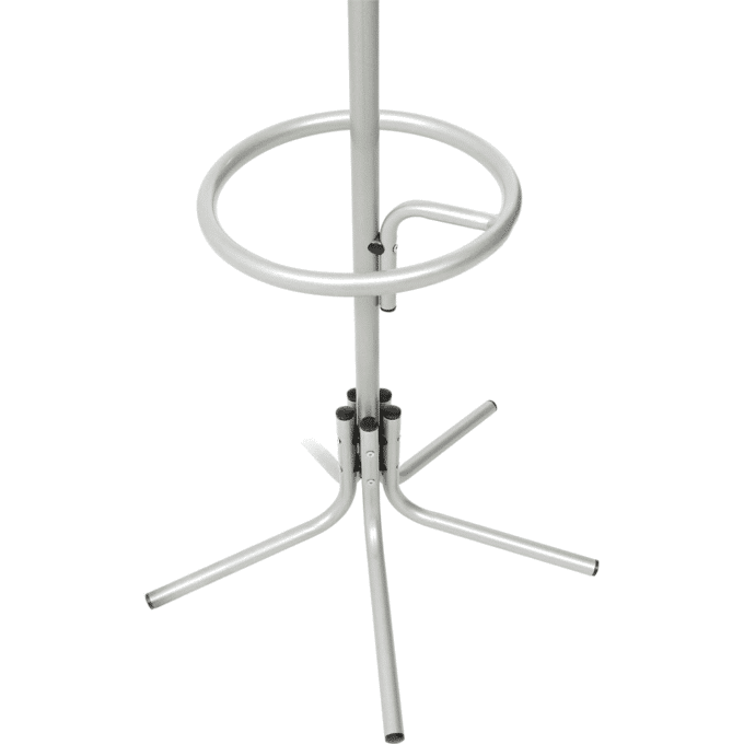 Bringen Sie Ordnung und Stil in Ihren Eingangsbereich mit unserem eleganten Garderobenständer aus Metall! Dieser stabile Ständer aus robustem Rundprofil (25 und 15 mm) in modernem Silbergrau bietet eine optimale Lösung für die Aufbewahrung von Jacken, Taschen und Schirmen. Mit einer Höhe von 185 cm und einem Durchmesser von 60 cm nimmt der Garderobenständer nur wenig Platz ein und passt perfekt in jede Ecke Ihres Raumes.