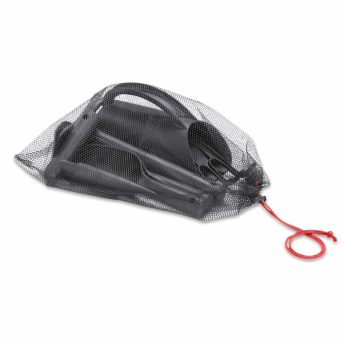 Nach getaner Arbeit können die Werkzeuge mühelos im beiliegenden Netz verstaut werden, sodass alles immer an einem Ort bleibt und schnell griffbereit ist.
