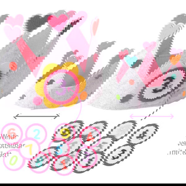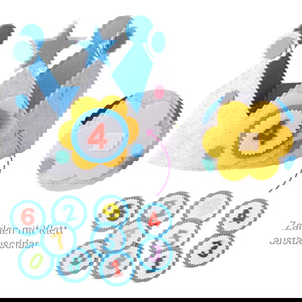 Die Geburtstagskrone ist für Jungs und Mädchen geeignet und lässt sich dank der austauschbaren Zahlen von 0–9 individuell anpassen. So kann Ihr Kind jederzeit die richtige Zahl wählen, um sein neues Lebensjahr zu markieren. Durch das Klettsystem sind die Zahlen im Handumdrehen gewechselt und schon kann die Feier starten!