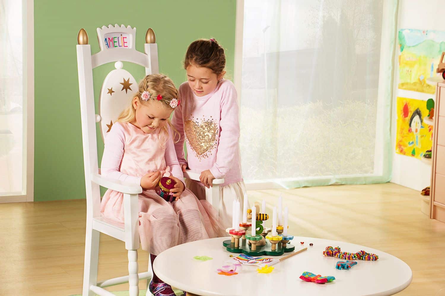 Geburtstagsstuhl – Dusyma – Der Thron für den besonderen Tag: Geburtstag – auf diesen Tag freut sich jedes Kind ganz besonders. Mit dem märchenhaft schönen Geburtstagsstuhl von Dusyma fühlt sich jedes Kind wie eine Prinzessin oder ein Prinz aus 1001 Nacht. Der Stuhl ist mit einem herausnehmbaren Namensschild in der Stuhllehne versehen, das individuell mit dem Namen des Geburtstagskindes beklebt werden kann.