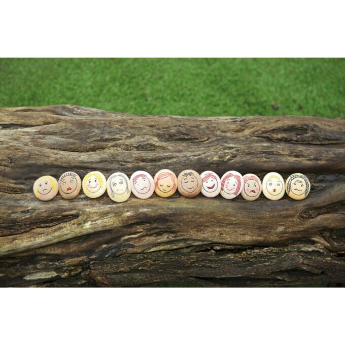 - Einzigartige Gestaltung: 12 Steine mit verschiedenen Gesichtsausdrücken helfen Kindern, Emotionen zu identifizieren.