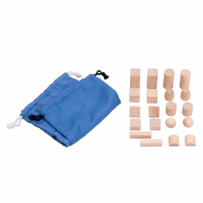 Im Geheimnisvollen Beutel finden sich verschiedene Körperformen, darunter Kugel, Ei, Zylinder, Stäbchen, Würfel, diagonal geteilter Würfel, Zylinderhälfte, Quader und halbem Würfel. Jedes dieser Teile ist in einem stabilen und ansprechenden Beutel aus 100 % Polyester untergebracht und bietet so eine sichere und praktische Aufbewahrungslösung.