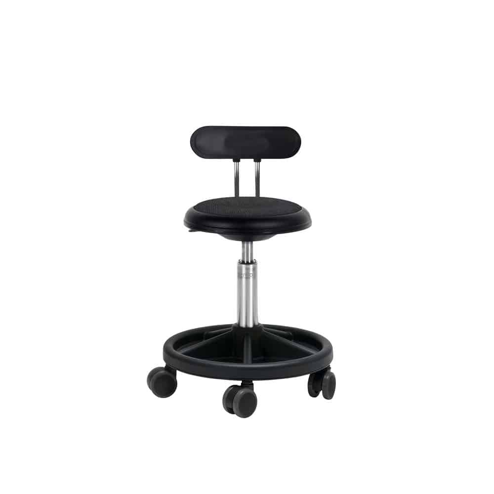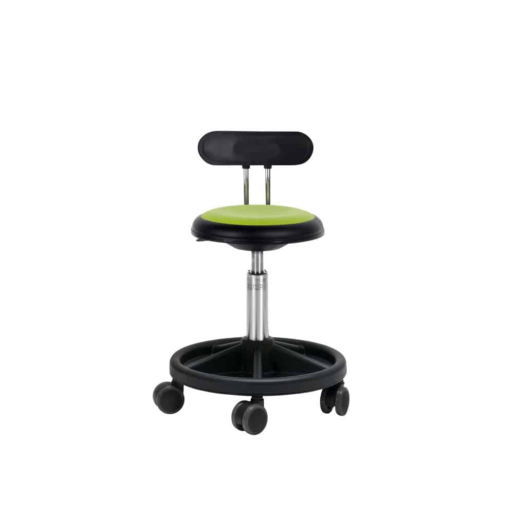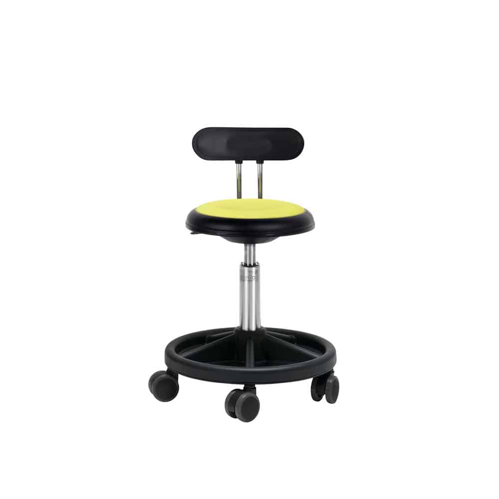 Die Sitzhöhe ist in mehreren Varianten von 30 cm. – 48 cm. und 66 cm. mit Gleiter erhältlich. New Ufo wird mit 3 verschiedenen Radtypen angeboten: herkömmlichen Rollen, Rollen mit weichem Profil, mit Lastabhängige bremsenrädern und Gleiter.