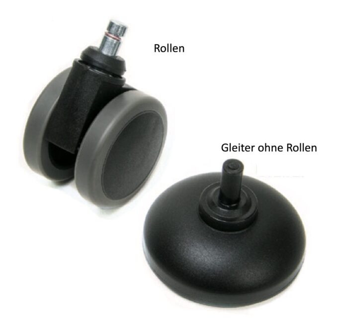 - Räder / Gleiter Ø 60 mm mit weichen Banen. Gleiter – nylon mit 30% Glasfaser und [PP]-Sohle. Auch mit Lastabhängigen Rädern lieferbar.