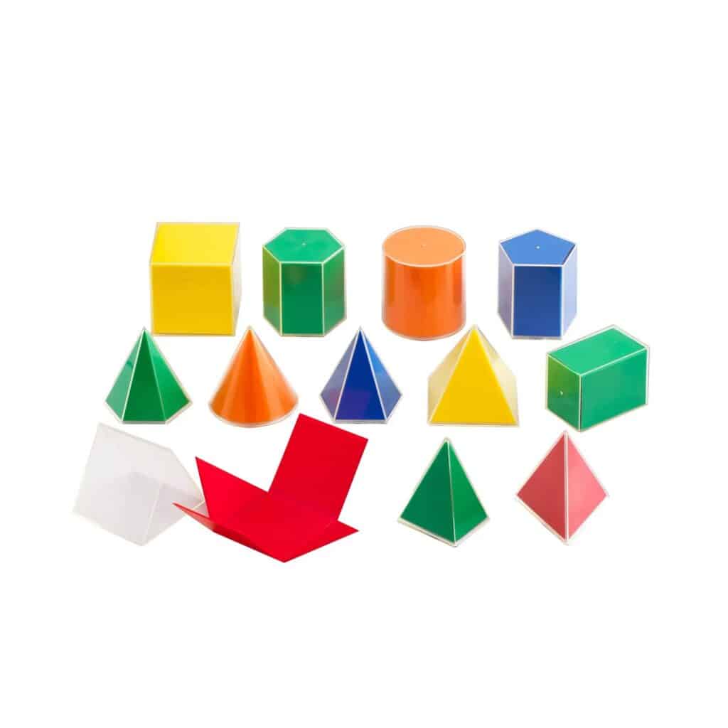 Alle wichtigen Grundformen enthalten.- 11 verschiedene Formen: Das Set deckt das gesamte Spektrum der elementaren Geometrie ab. Enthalten sind unter anderem Würfel, Zylinder, Kegel sowie diverse Prismen und Pyramiden (dreieckig, viereckig, fünfeckig, sechseckig).
