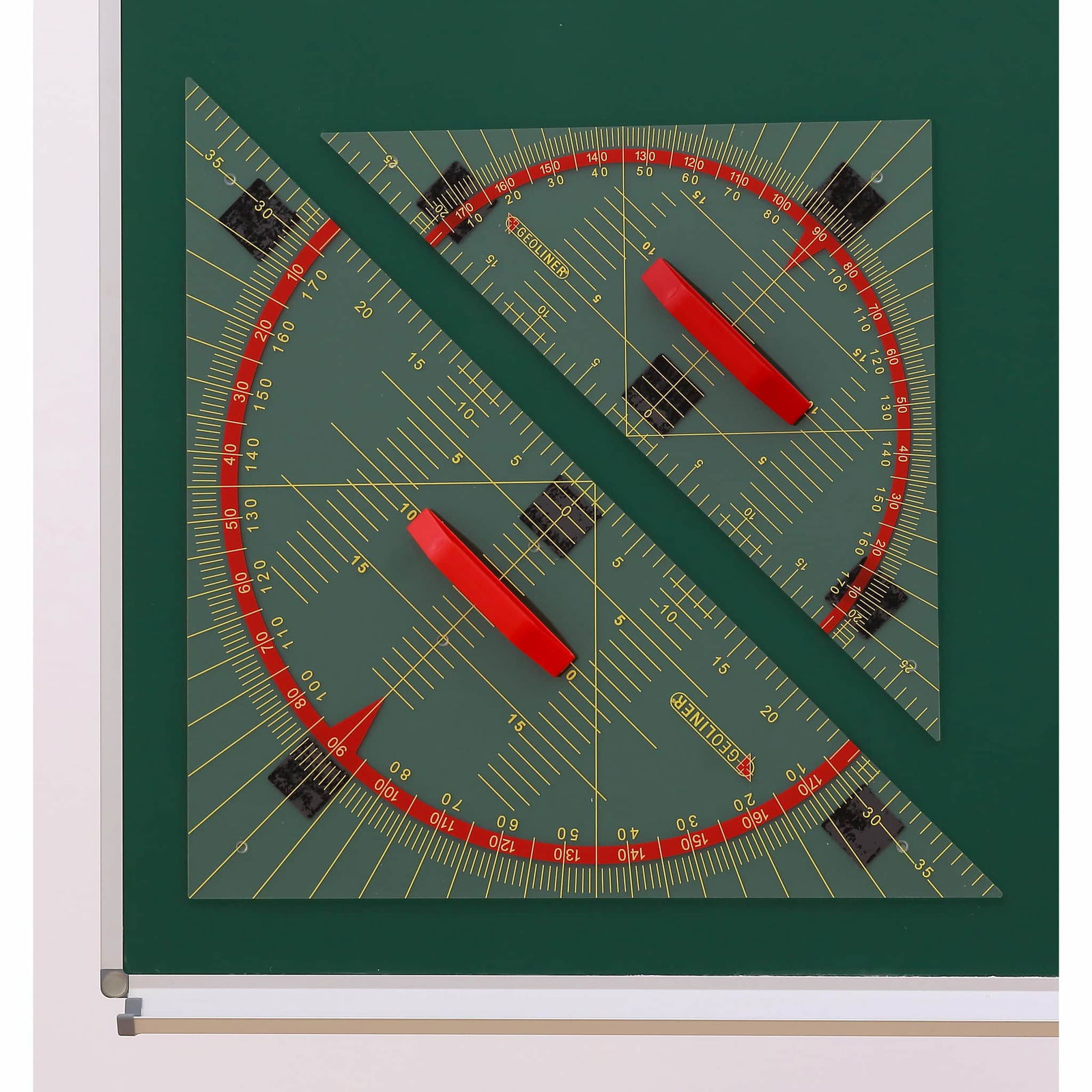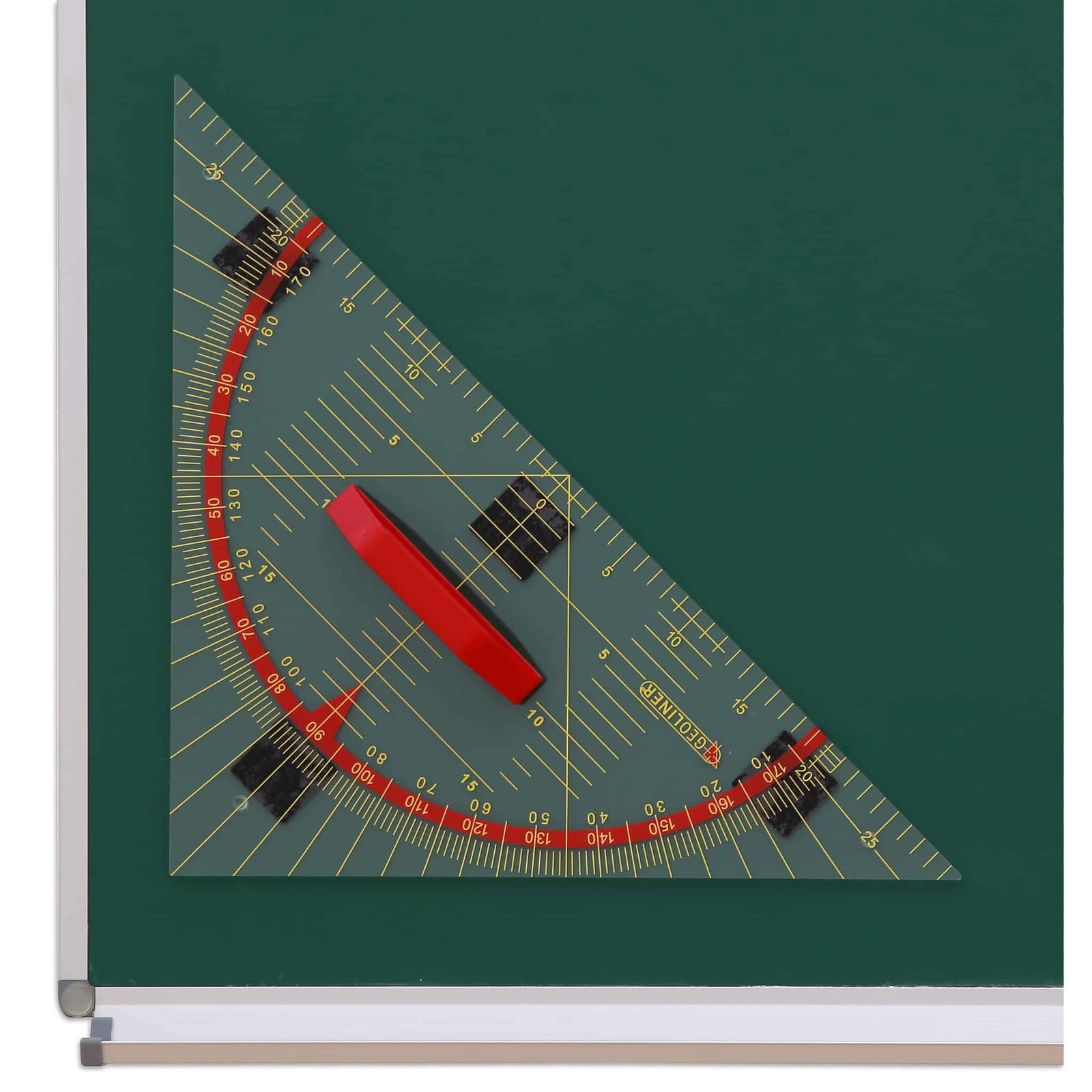 Die vier Magnetplatten an der Unterseite des Geodreiecks sorgen dafür, dass es stabil an der Tafel haftet. Dies ist insbesondere wichtig für Lernende, die Schwierigkeiten im Umgang mit großen Zeichengeräten haben. Durch die magnetische Haftung bleibt das Geodreieck während des Zeichnens an Ort und Stelle, sodass die Schüler ohne Verrutschen oder Wackeln präzise arbeiten können. Dies fördert nicht nur die Sicherheit beim Arbeiten, sondern steigert auch das Vertrauen in die eigenen Fähigkeiten.