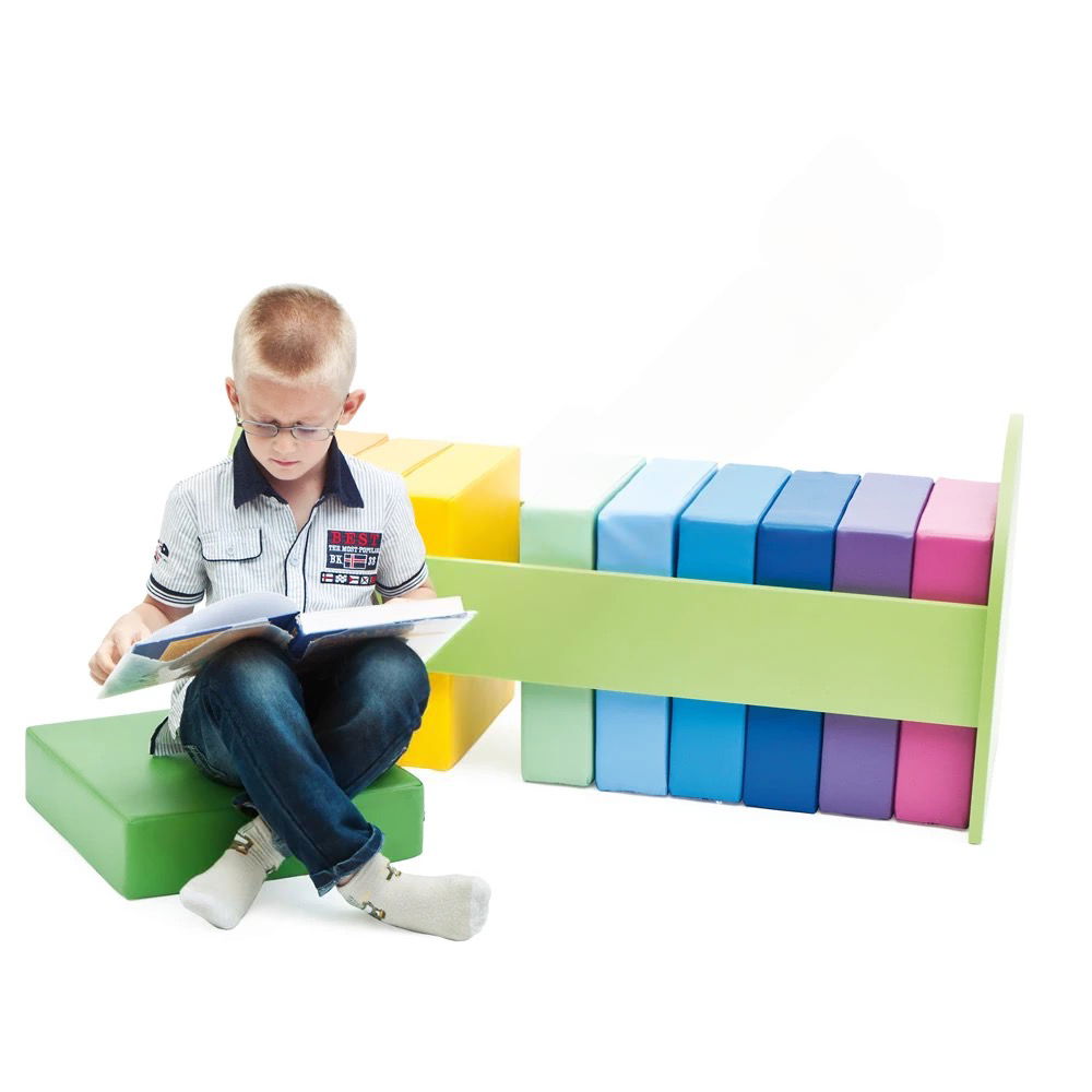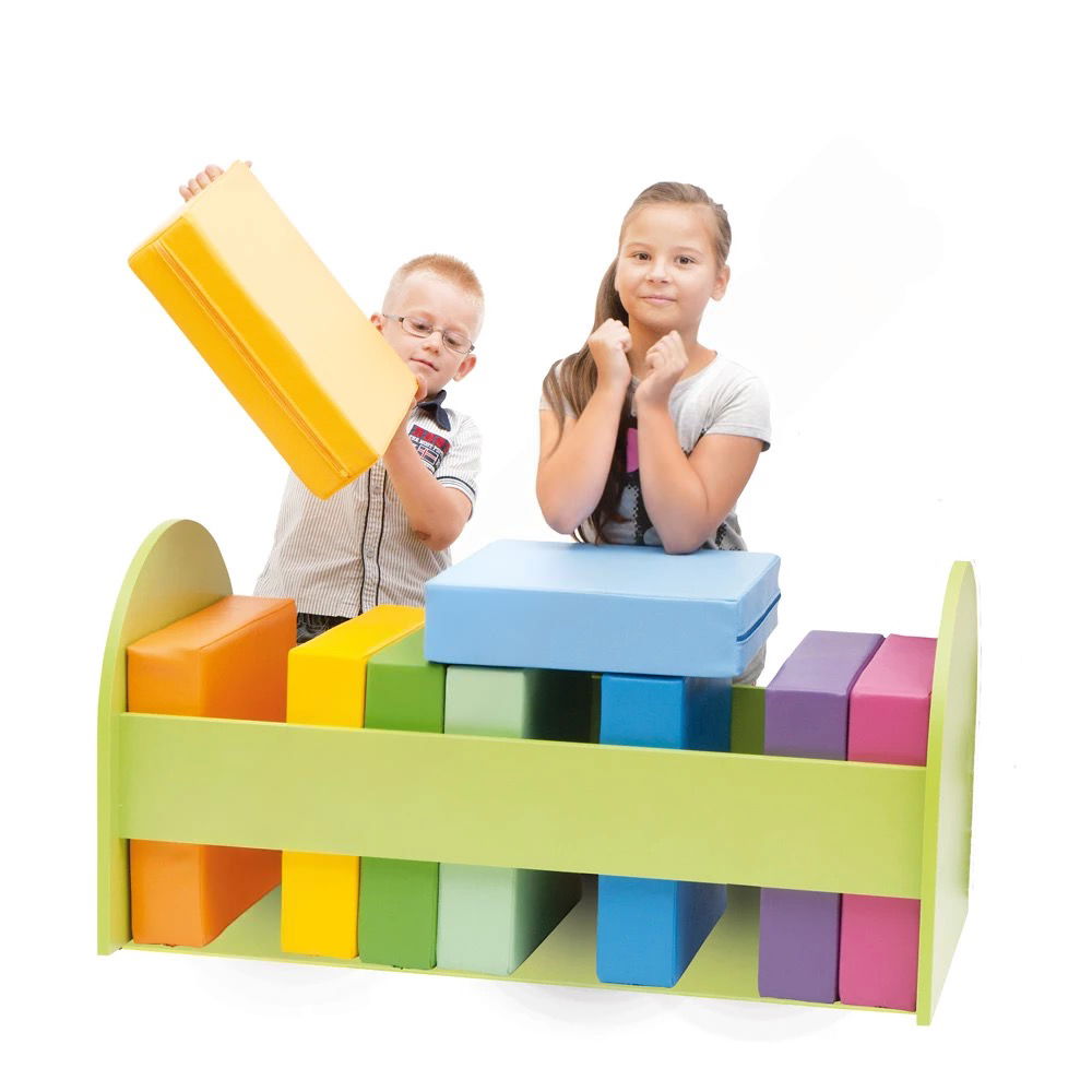Schluss mit herumliegenden Kissen! Das stabile, grüne Gestell bietet für jedes der zehn Kissen einen festen Platz. Die klare Struktur macht das Aufräumen nach der Nutzung intuitiv und einfach – selbst für die Kleinsten. Das schult den Ordnungssinn und sorgt dafür, dass der Gruppenraum stets aufgeräumt und sicher bleibt. - Strapazierfähig und extrem pflegeleicht