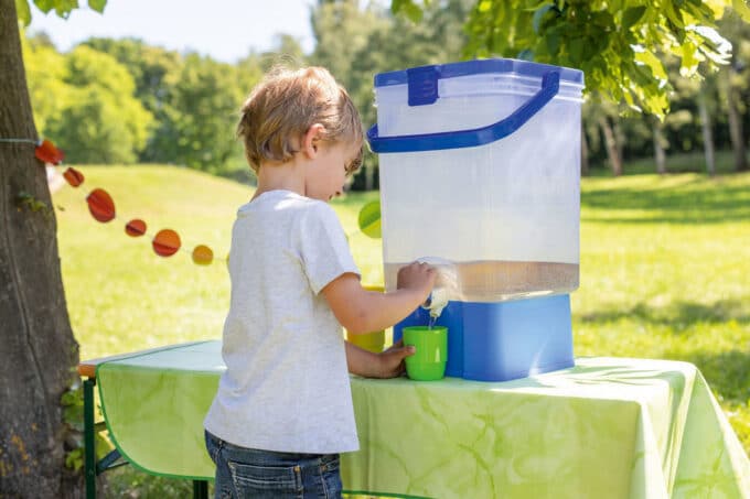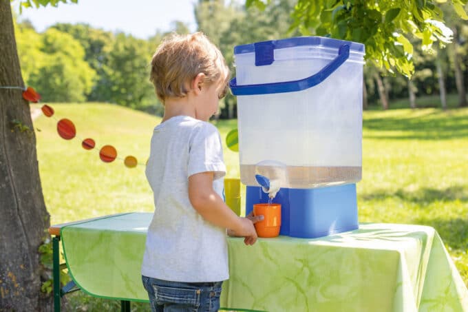 Der Getränkespender ist kinderfreundlich gestaltet und einfach zu handhaben, sodass selbst die Kleinsten ab 3 Jahren problemlos ihre Getränke zapfen können. Egal ob im Pausenraum, auf dem Spielplatz oder bei Veranstaltungen – dieser Getränkespender ist ein unverzichtbares Accessoire für jede Einrichtung.