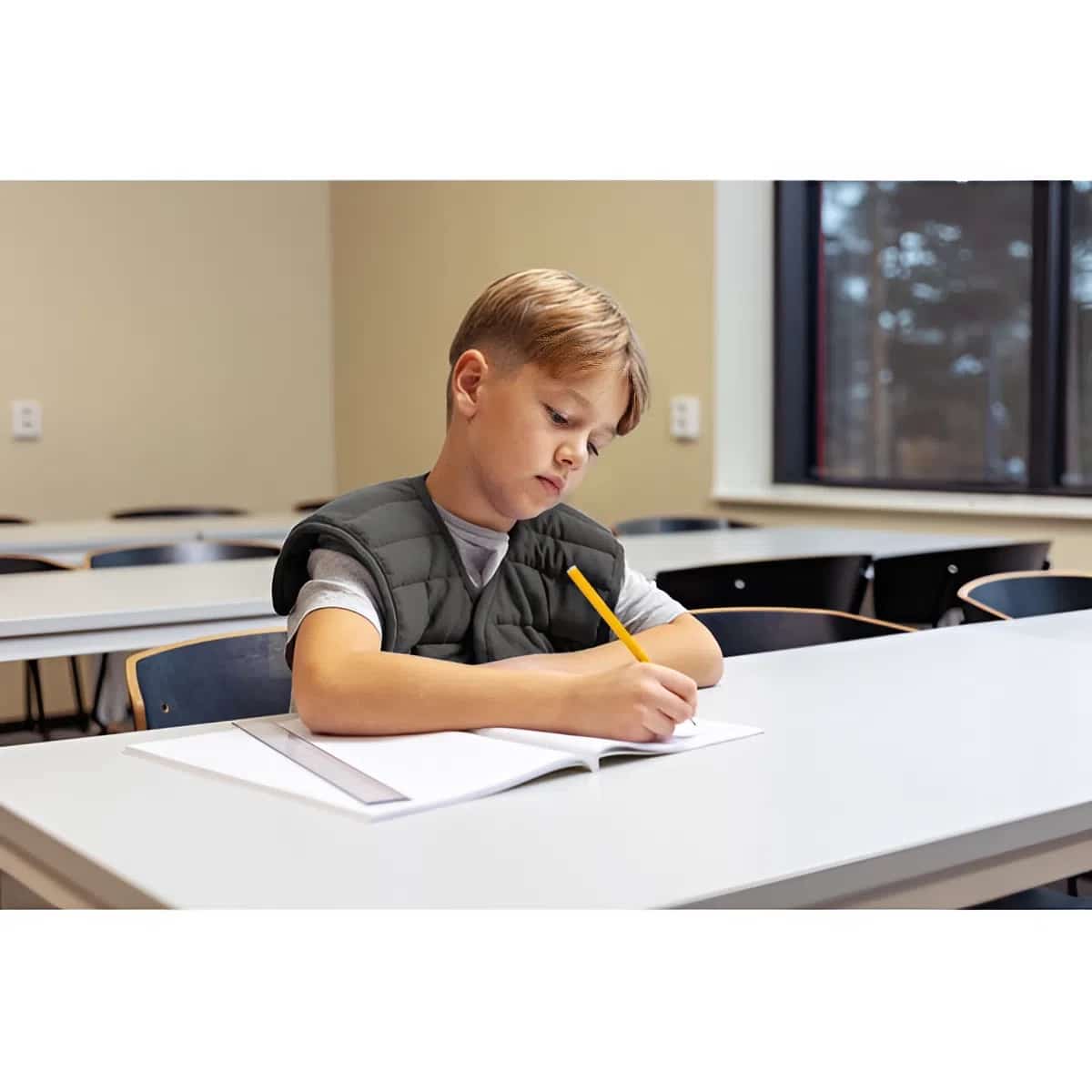 Weniger Unruhe, mehr Fokus.- Gezielter Tiefendruck: Das Gewicht von 1 kg ist ideal dosiert, um einen sanften Druck auf die Schultern auszuüben. Dieser Reiz hilft nachweislich, motorische Unruhe zu reduzieren und die Konzentrationsfähigkeit zu steigern, was besonders beim Sitzen am Tisch von Vorteil ist.
