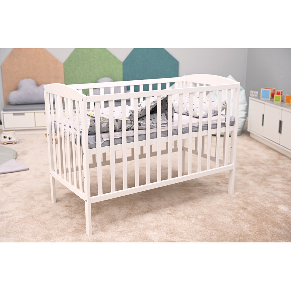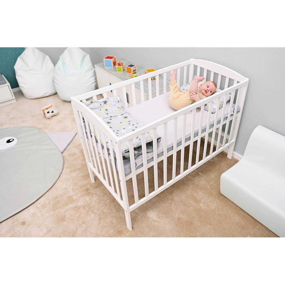Mit seinen kompakten Gesamtmaßen von 124 x 66 x 90 Zentimetern passt das Bettchen auch in kleinere Räume oder lässt sich problemlos im Elternschlafzimmer aufstellen. Die Innenmaße von 120 x 60 Zentimetern bieten dem Kind dennoch ausreichend Platz zum Strecken, Träumen und Wachsen. Bitte beachten Sie, dass die passende Matratze separat bestellt werden muss, um die Schlafoase perfekt zu machen.