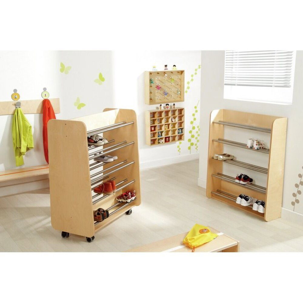 Bringen Sie eine langlebige, übersichtliche und mobile Struktur in Ihre Garderobe. Entscheiden Sie sich für den Schuhwagen für 80 Schuhe und schaffen Sie eine einladende, ordentliche Umgebung, von der Betreuer und Kinder gleichermaßen profitieren.
