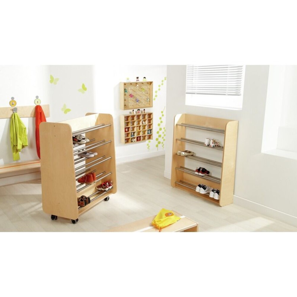 Dieses doppelseitige Raumwunder fasst bis zu 80 einzelne Schuhe, was 40 Paaren entspricht. So bringen Sie das Schuhwerk einer ganzen Kindergarten- oder Schulklasse zentral und übersichtlich an einem einzigen Ort unter. - Maximale Flexibilität durch leichtgängige Rollräder