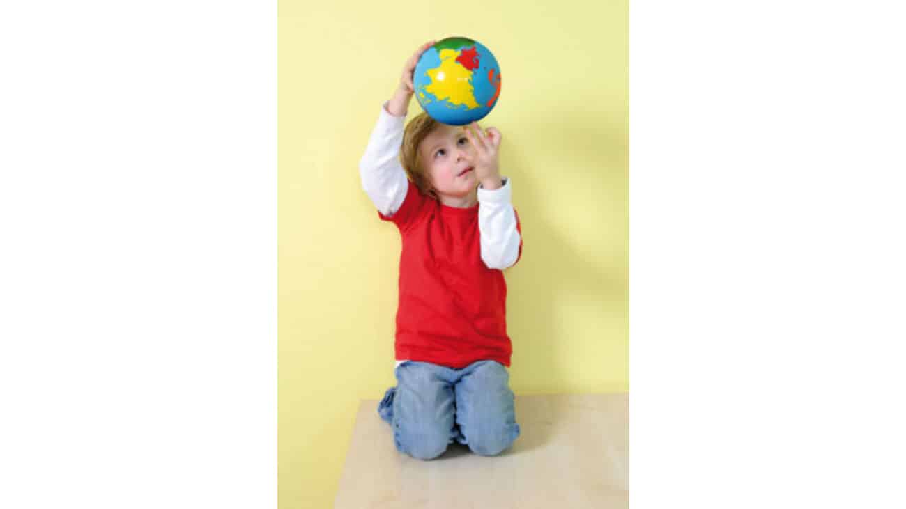 Die Erdteile sind in 7 verschiedenen Farben erhaben dargestellt, sodass die Kinder die Umrisse der Kontinente nicht nur sichtbar, sondern auch fühlbar erleben können. Dieser innovative Ansatz macht den Globus zu einem besonderen Lernmittel im Erdkundeunterricht. Die Kinder können die Welt nicht nur im Handumdrehen drehen und anschauen, sondern auch ihren eigenen Entdeckungen nachgehen, indem sie die Erdkugel vom stilvollen Holzfuß abnehmen und in den Händen halten.