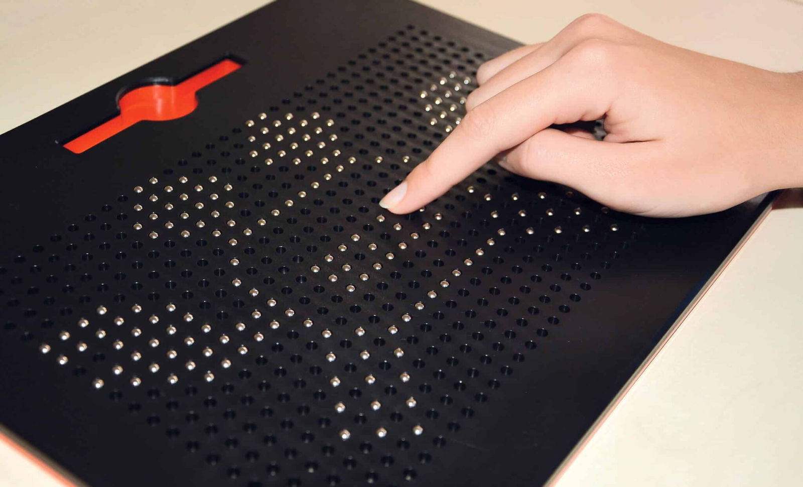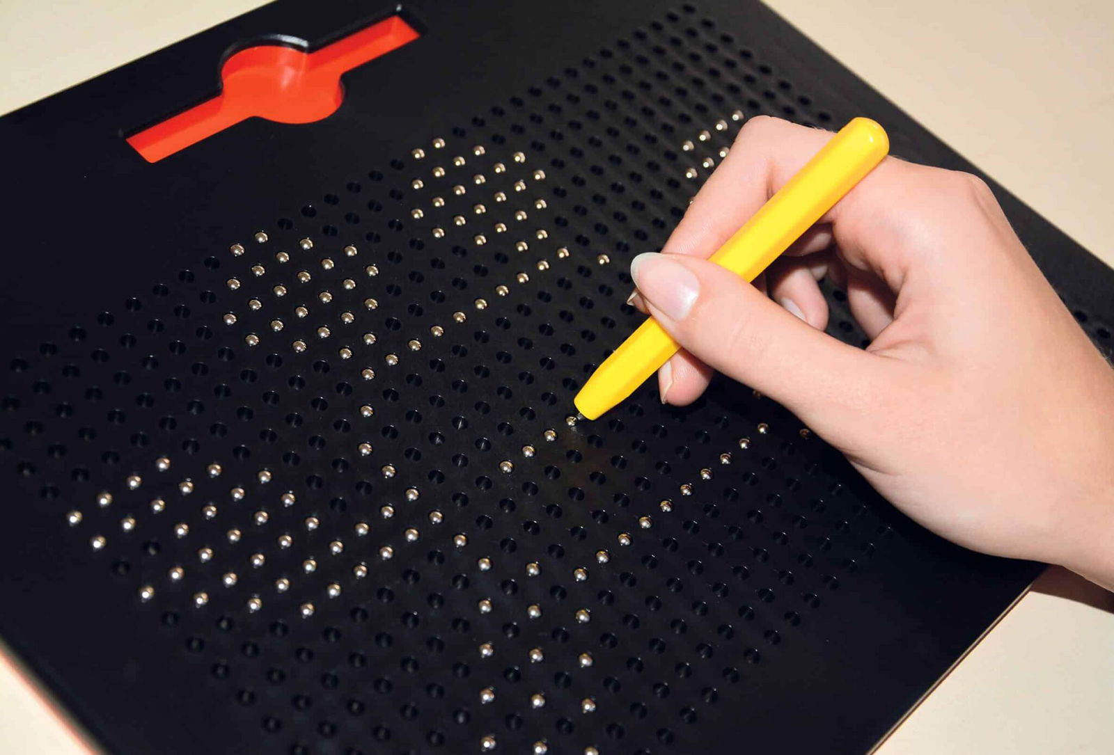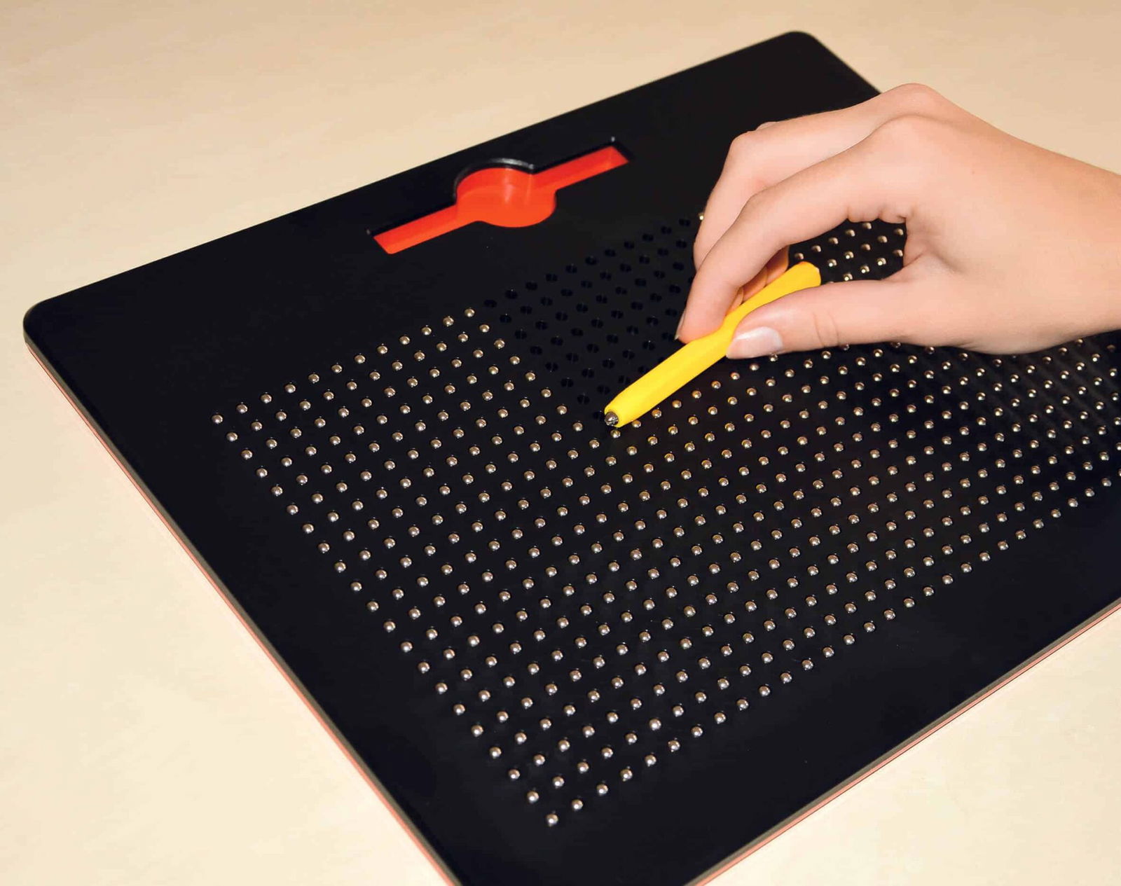 Verwandeln Sie spielerisches Lernen in ein faszinierendes Unterfangen mit dem GOWI MagPad. Kinder werden begeistert sein, wenn sie die 714 Kugeln mit dem magnetischen Stift an die Oberfläche „klicken“ lassen, um fesselnde Motive zu erschaffen! Jedes Bild, von komplexen Mustern bis zu lieblichen Kunstwerken, ist möglich und wird kinderleicht wieder ausradiert, indem die Kugeln sanft mit den Fingern nach unten gedrückt werden.