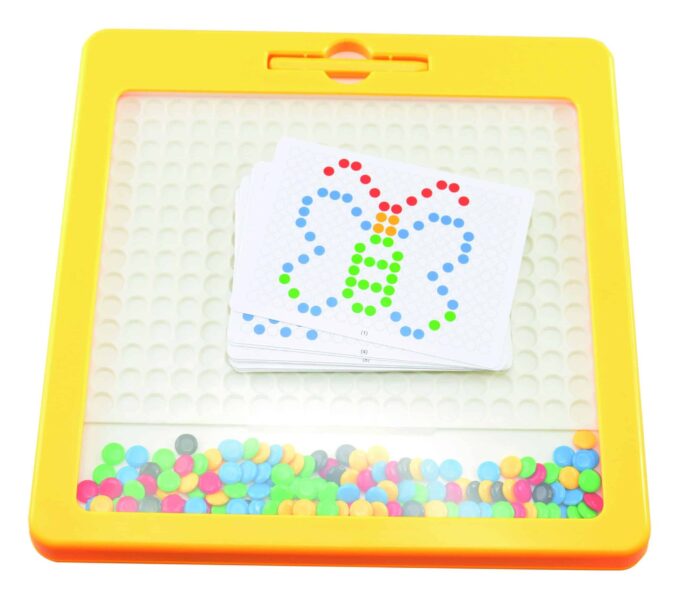 Mit dem GOWI MagPad Dots erwacht Kreativität zum Leben! Dieses innovative Spielzeug ermöglicht es Kindern, mit einem magnetischen Stift bunte Scheibchen auf magische Weise an die gewünschte Stelle zu befördern. Ob Muster nachbilden oder frei gestalten – das MagPad Dots bietet endlose Möglichkeiten zur Entfaltung der kindlichen Fantasie. Im Set enthalten sind 10 doppelseitige Vorlagekarten, die als Inspiration dienen und dabei helfen, die Feinmotorik spielerisch zu schärfen.
