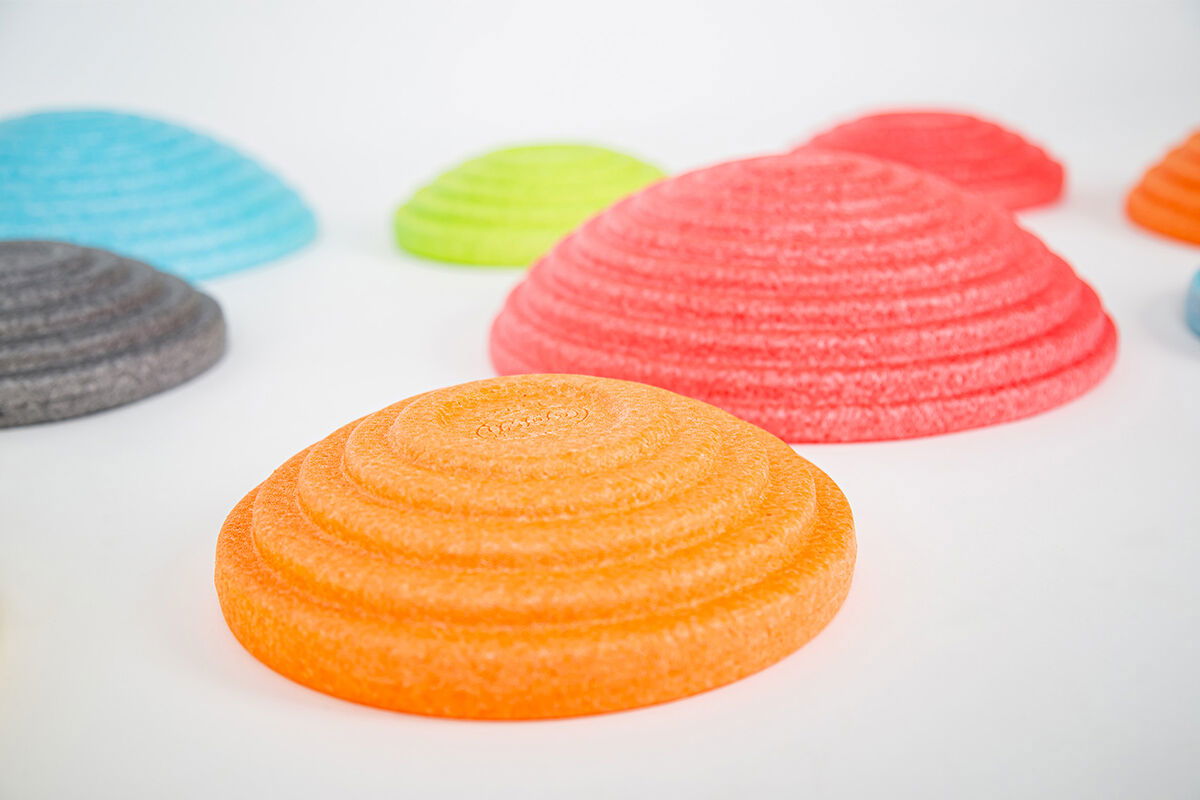 Wie ihre kleineren Geschwister sind auch die XL-Steine aus innovativem, federleichtem EPP (expandiertem Polypropylen) gefertigt. Sie vereinen extreme Widerstandsfähigkeit mit einem Minimum an Gewicht. Die strukturierte Oberfläche sorgt für einen sicheren, rutschfesten Stand, während das stoßdämpfende Material Gelenke und Böden schont. Ob für mutige Sprünge, gezielte Balance-Übungen oder als vielseitiges Element im freien Spiel – diese Steine sind für große Abenteuer gemacht.