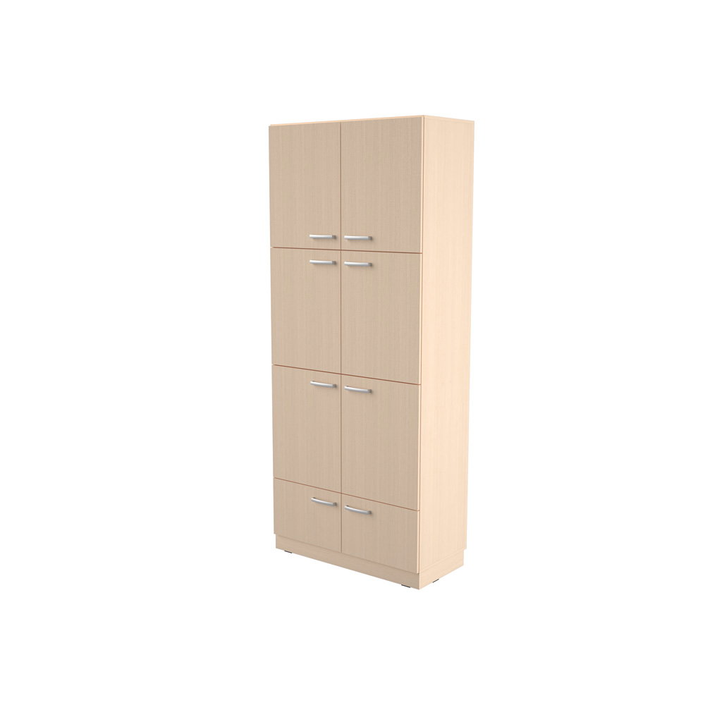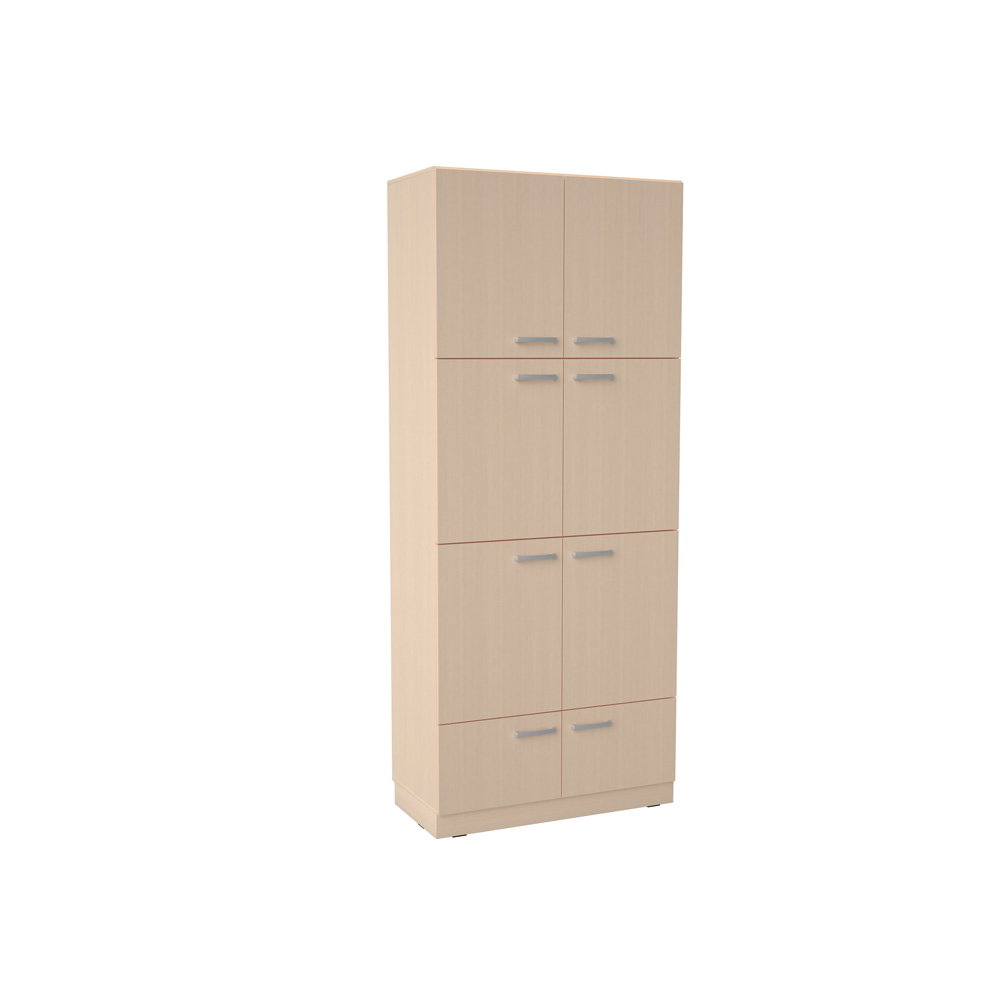 Hinter den Türen verbirgt sich ein durchdachtes System. Jedes der Fächer ist mit einer Höhe von 33,4 Zentimetern perfekt auf die Größe von Standard-Aktenordnern abgestimmt, was die Organisation von Unterlagen enorm erleichtert. Verstellbare Fachböden hinter den mittelgroßen Türen bieten zusätzliche Flexibilität, um den Stauraum individuell an Ihre Bedürfnisse anzupassen. Erhältlich in einem zeitlosen Weiß oder einer warmen Ahorn-Optik, fügt sich der Schrank harmonisch in jedes Einrichtungskonzept ein.