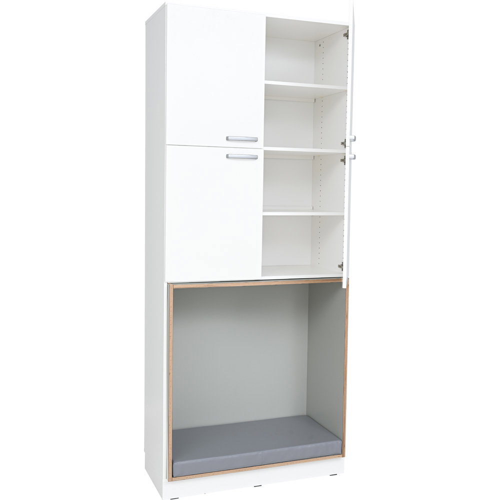 Mit seiner Höhe von über 2,5 Metern nutzt der Hochschrank XXL die volle Raumhöhe aus und schafft ein Maximum an Stauraum auf einer minimalen Grundfläche. - Einzigartige Kombination aus Stauraum und Rückzugsort