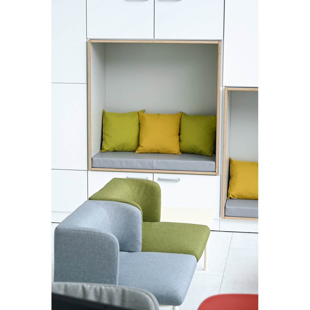 Die optionale, gepolsterte Sitznische schafft einen wertvollen, geschützten Ort der Ruhe und Entspannung mitten im Alltag. - Perfekte Organisation für Ordner und mehr