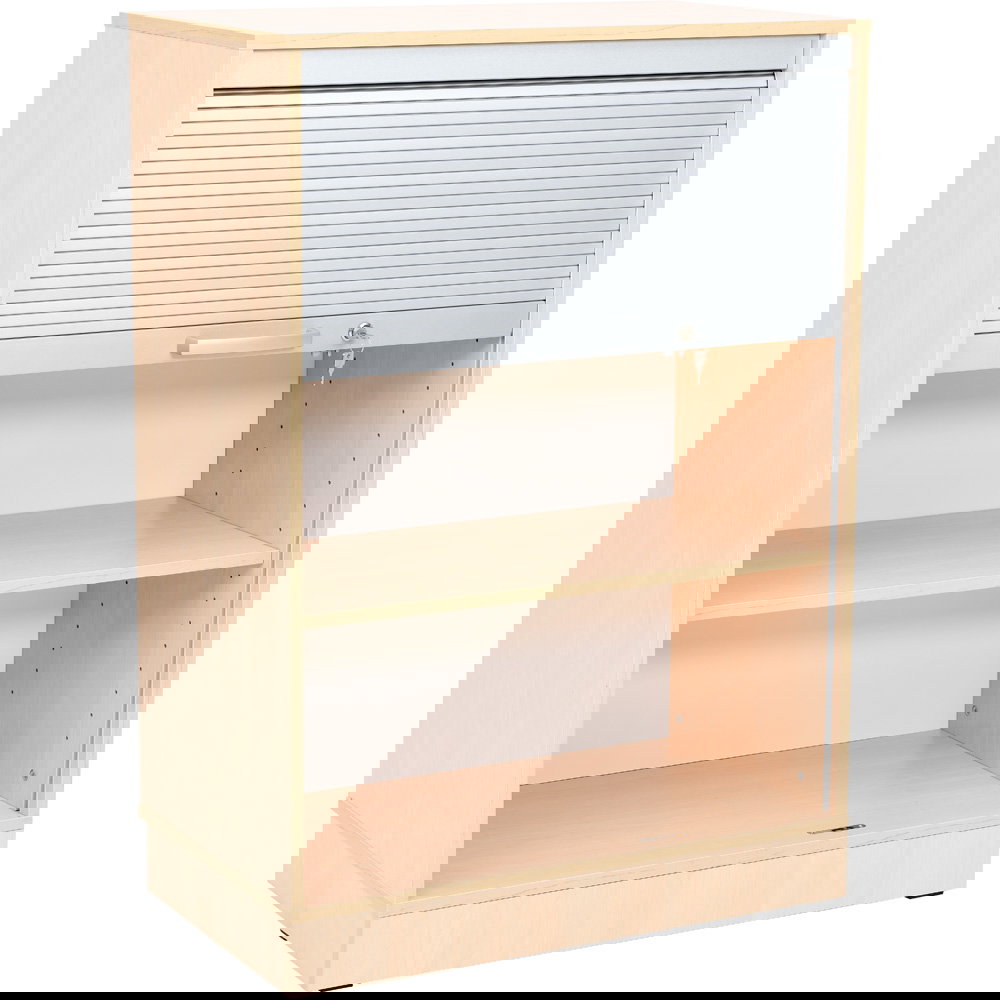 In Büros, Sekretariaten oder Lehrerzimmern herrscht oft reger Betrieb. Wenn sich dann noch Schranktüren in den Laufweg öffnen, wird der Platz schnell knapp und die Unfallgefahr steigt. Der Grande Jalousieschrank L (T 48) ist die intelligente Antwort auf Raumnot und Sicherheitsbedürfnisse. Mit einer Höhe von 117,4 cm bietet er großzügigen Stauraum für umfangreiche Aktenbestände, ohne dabei wertvolle Verkehrsfläche zu blockieren.