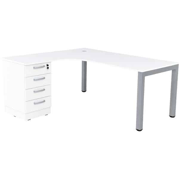 Grande L-Schreibtisch mit Metallbeinen – Sitzplatz rechts – Weiß