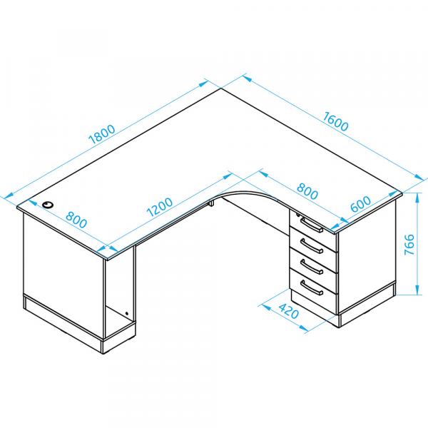 Technische Daten Grande L-Schreibtisch – Sitzplatz links – Ahorn