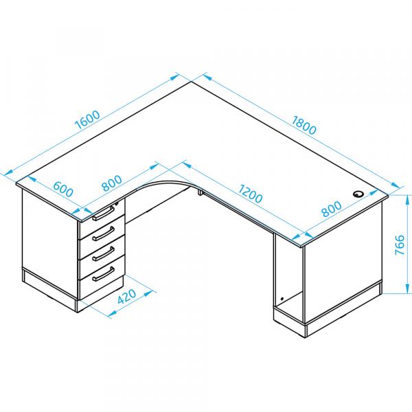 Technische Daten Grande L-Schreibtisch – Sitzplatz rechts – Ahorn