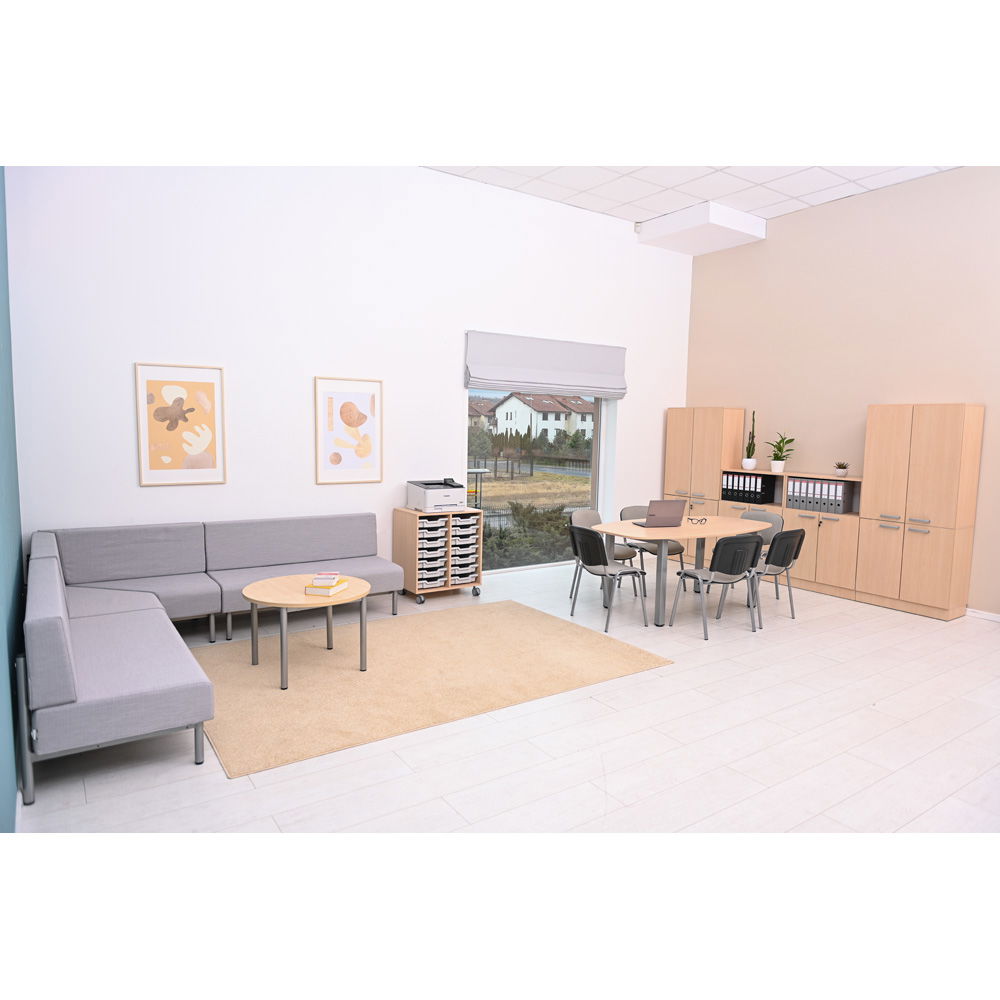 In modernen, dynamischen Lern- und Arbeitswelten ist Flexibilität entscheidend. Materialien müssen schnell von A nach B, Arbeitsbereiche spontan neu geordnet und Räume vielseitig nutzbar sein. Das Grande Regal M auf Rollen (B 70) ist die perfekte Antwort auf diese Anforderungen. Es ist mehr als nur ein Regal; es ist ein mobiler Materialschrank, der es Ihnen ermöglicht, Ordnung genau dorthin zu bringen, wo sie gebraucht wird. Dieser flexible Korpus, erhältlich in warmem Ahorn-Jylland-Dekor oder klassischem Weiß, bietet die ideale Basis, um ein maßgeschneidertes, mobiles Aufbewahrungssystem zu schaffen.