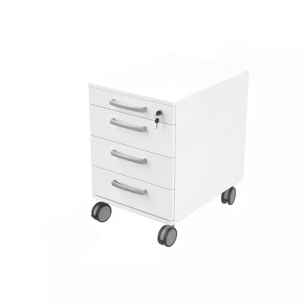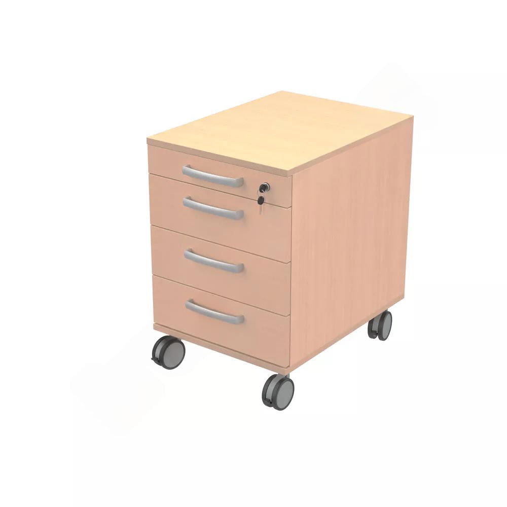 Vier Auszüge bieten strukturierten Platz für alles, was Sie am Schreibtisch benötigen. Die oberste Schublade dient als praktischer Materialauszug für Kleinteile wie Stifte, Büroklammern und Haftnotizen. Die drei darunterliegenden Schubladen bieten großzügigen Stauraum für Dokumente, Unterlagen und Arbeitsmaterialien. So behalten Sie stets den Überblick. - Mobil und bodenschonend