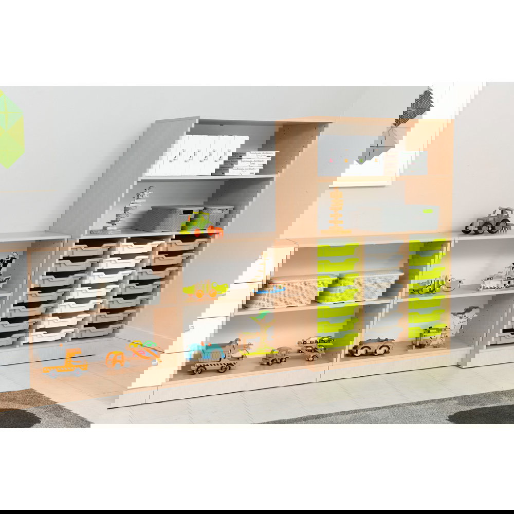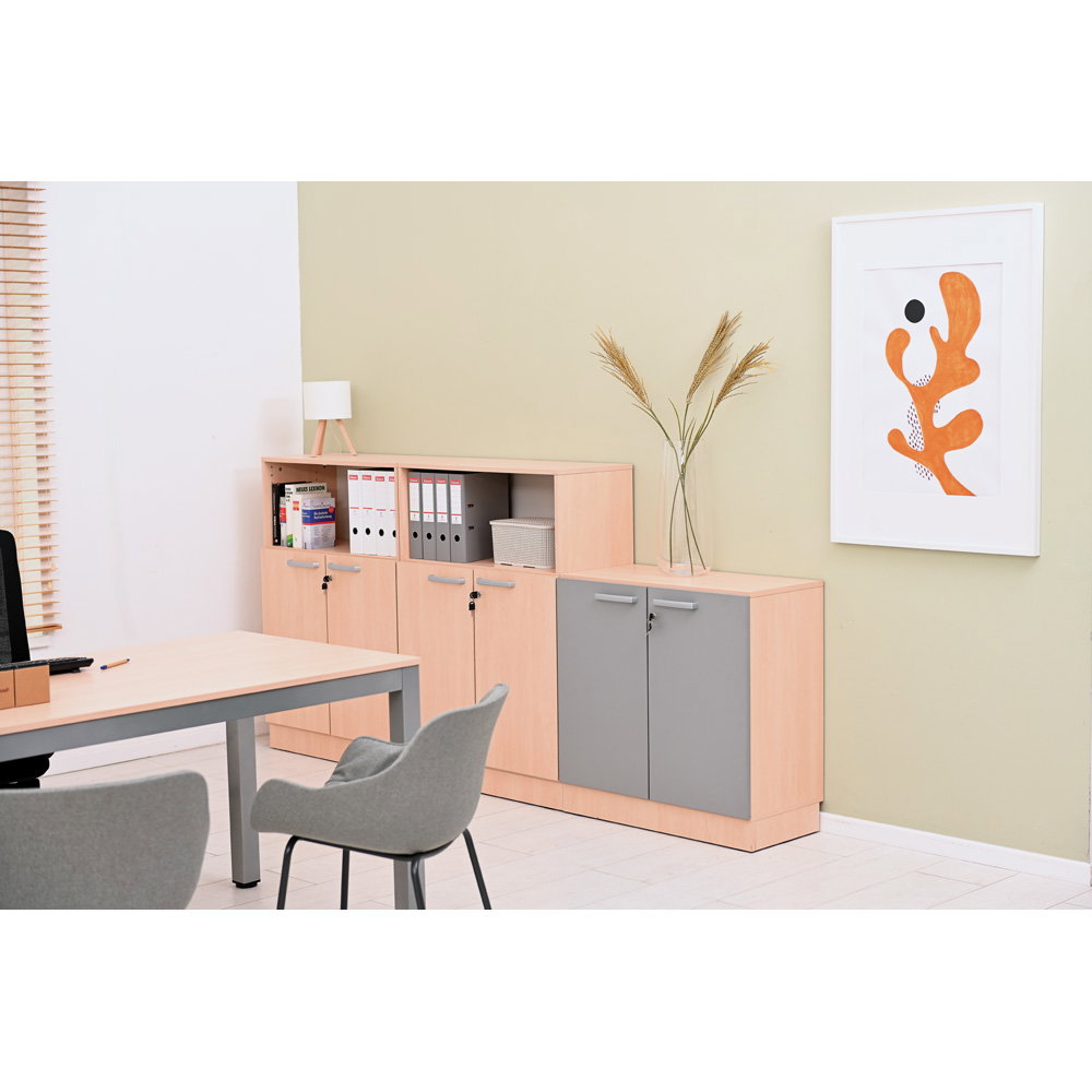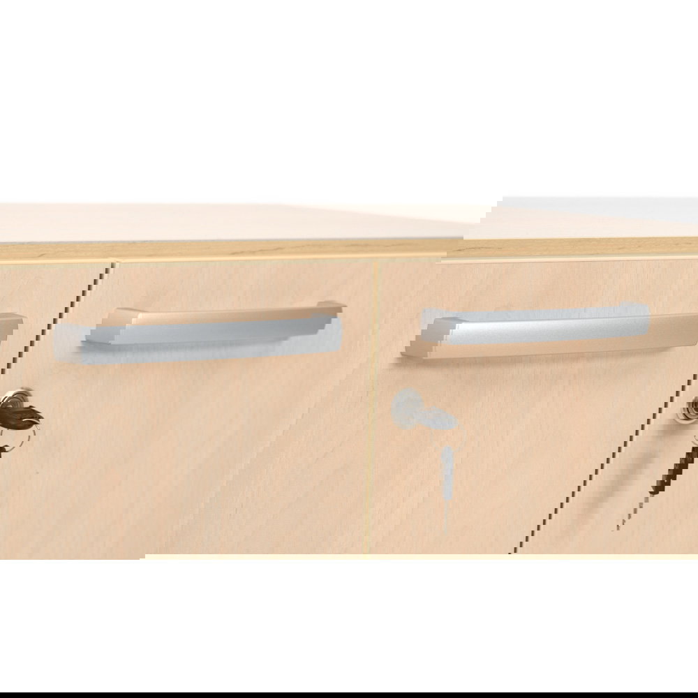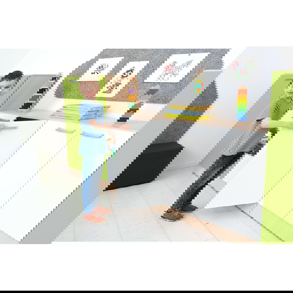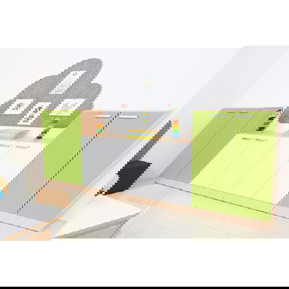 Jeder gut organisierte Raum braucht ein starkes Fundament. Der Grande Schrank M (B 82) ist genau das: ein vielseitiges und geräumiges Basiselement, das sich flexibel an Ihre Bedürfnisse anpasst. Mit seiner großzügigen Breite von 82 cm bietet er reichlich Stauraum für Ordner, Bücher, Spielzeug und Materialien aller Art. Ob im lebhaften Klassenzimmer, im strukturierten Büro oder im kreativen Gruppenraum – dieser Schrank ist die ideale Lösung, um Ordnung zu schaffen und zu bewahren. Erhältlich in zwei Tiefen (38 cm und 48 cm) sowie in den Dekoren Ahorn Jylland oder modernem Weiß, fügt er sich harmonisch in jedes Ambiente ein.