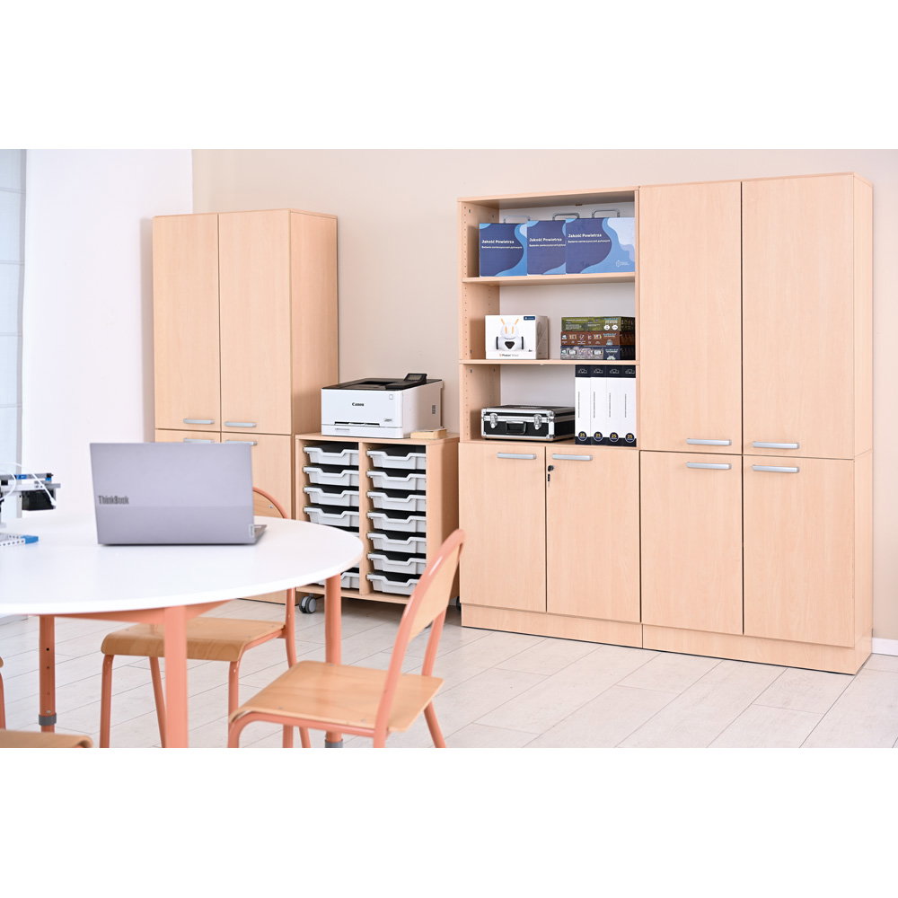 Mit 82 cm Breite bietet der Schrank enorm viel Platz. Die großflächigen Fächer eignen sich ideal zur Unterbringung von breiten Ordnern, großen Spielen oder umfangreichen Materialsammlungen. - Robuste Qualität für den anspruchsvollen Alltag