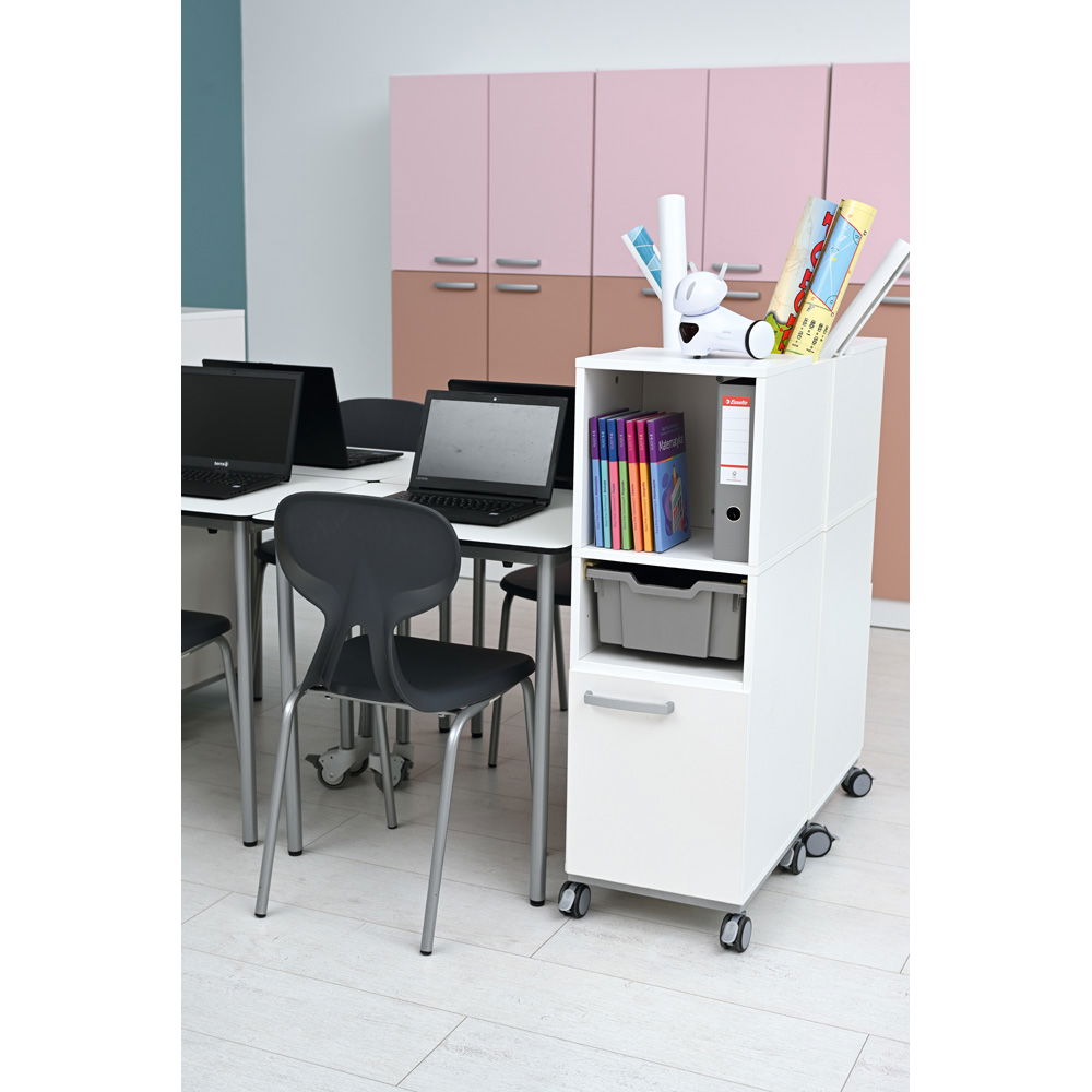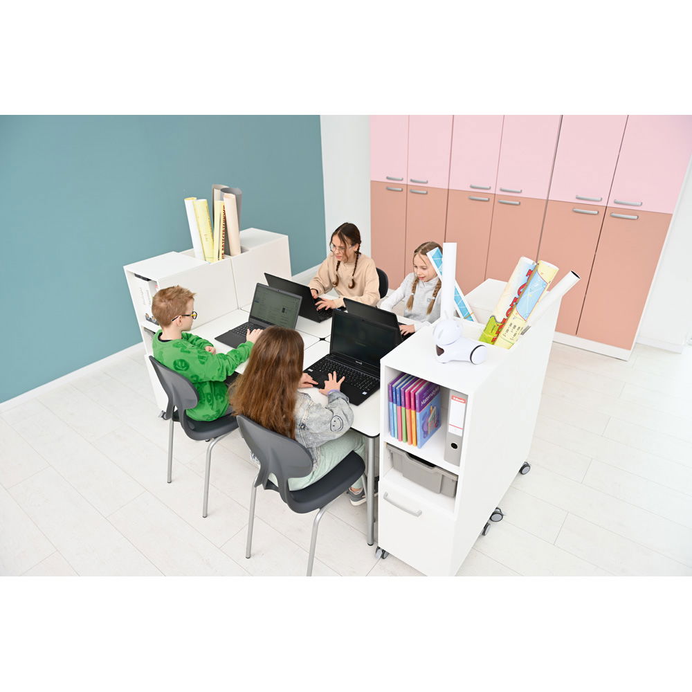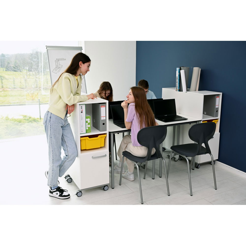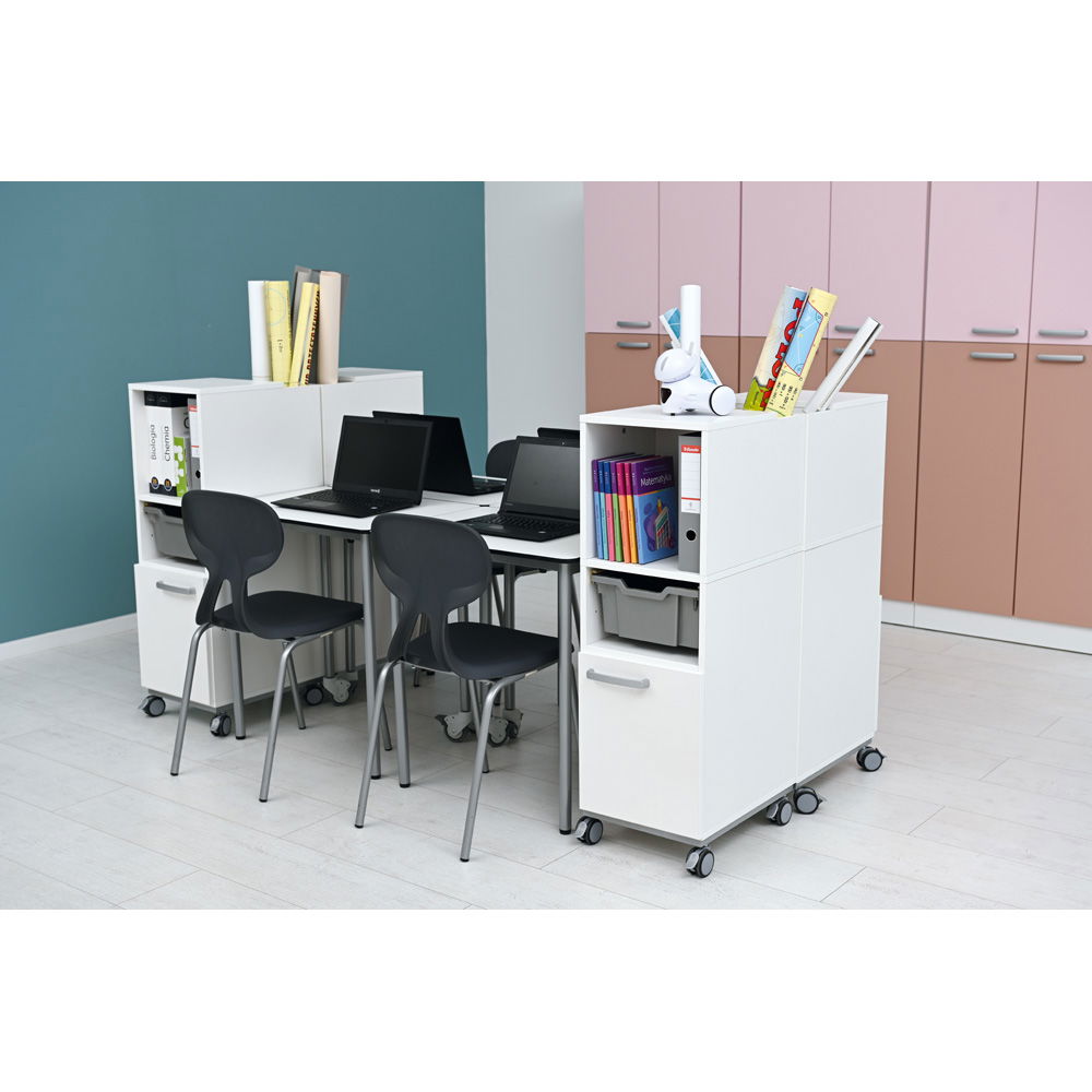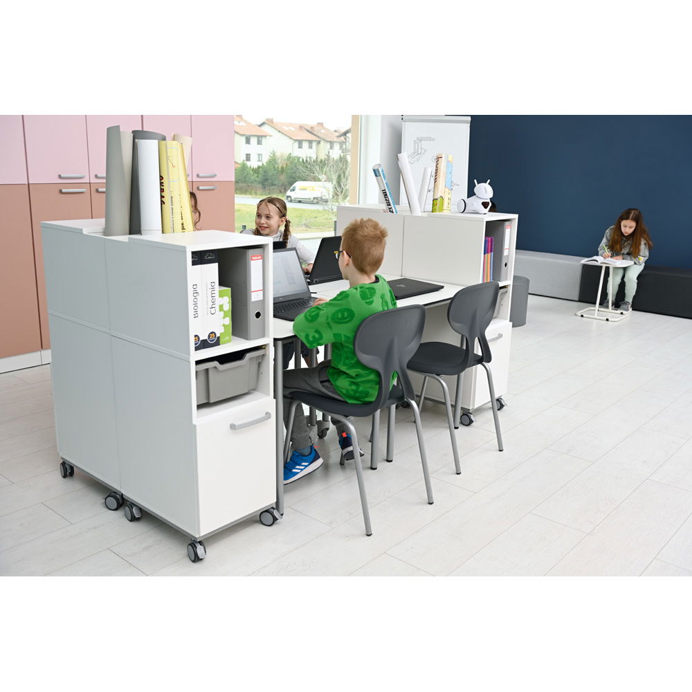 Verwandeln Sie statische Arbeitsplätze in dynamische Lernumgebungen. Die leichtgängigen Rollen ermöglichen es, den Stauraum jederzeit neu zu positionieren. Zwei Feststellbremsen garantieren dabei stets einen sicheren Stand, sobald der ideale Platz gefunden ist. - Durchdachte Fächer für jeden Zweck