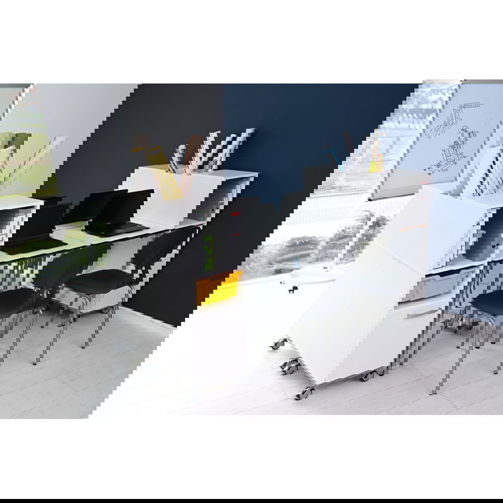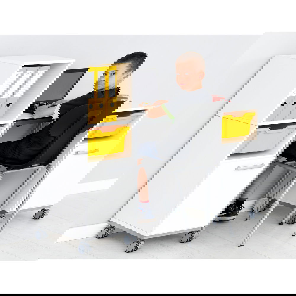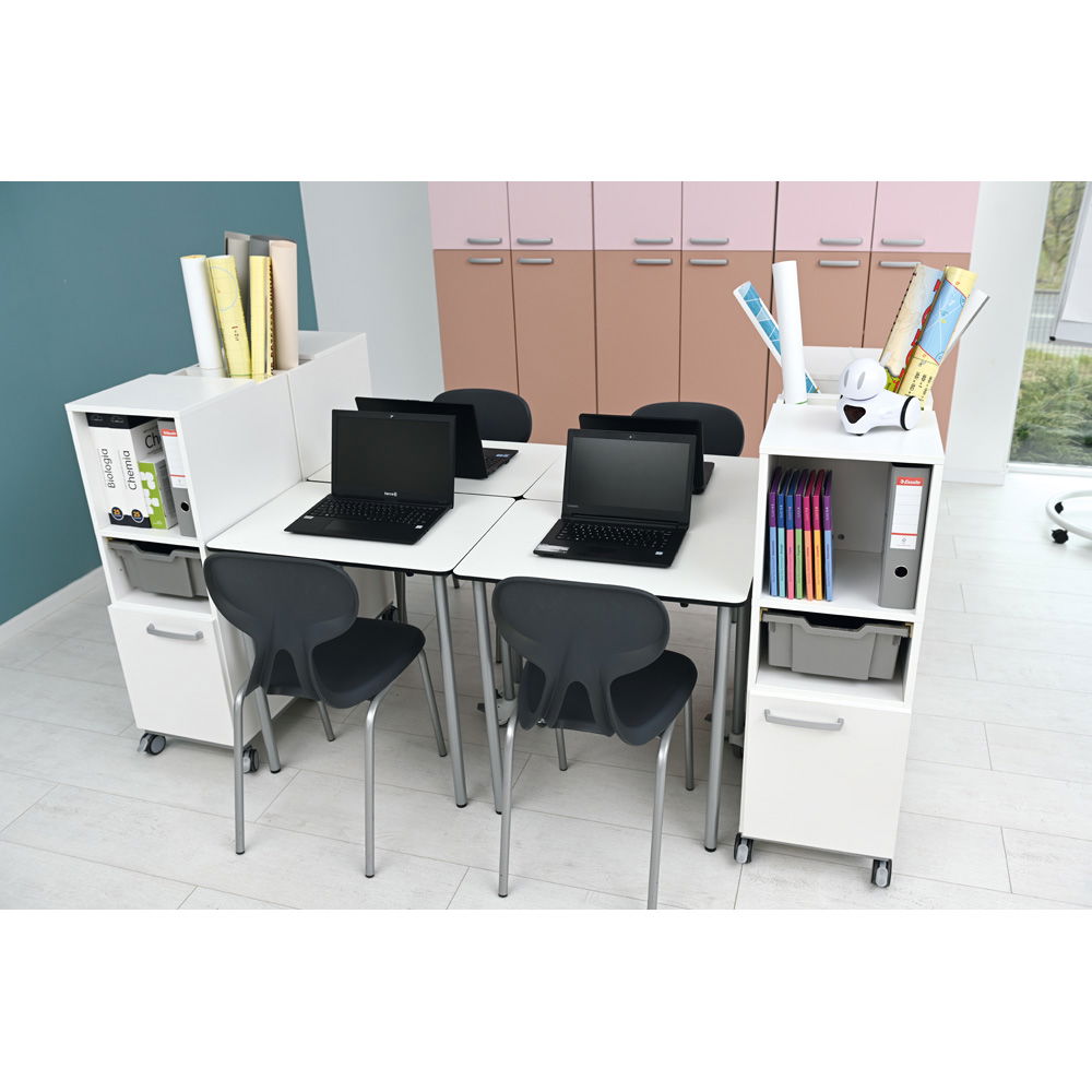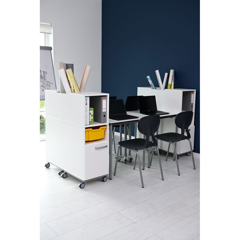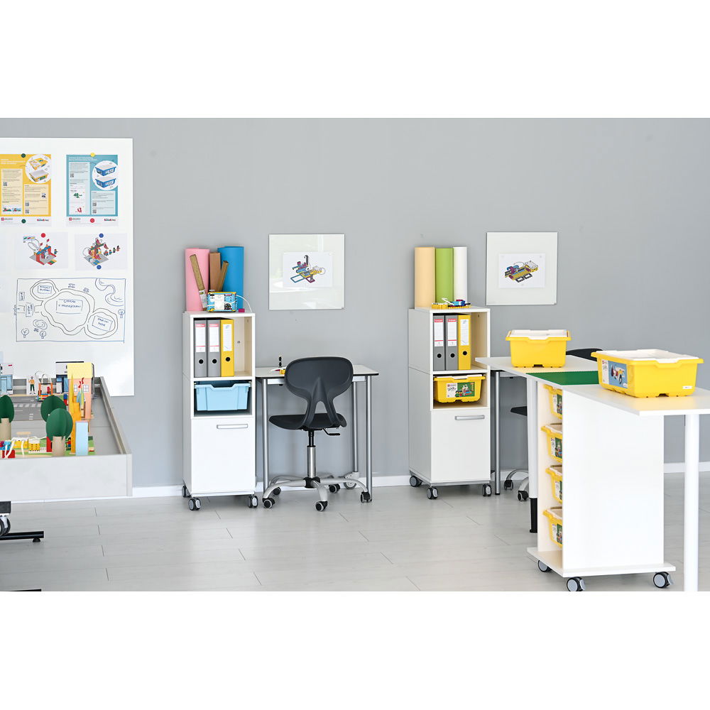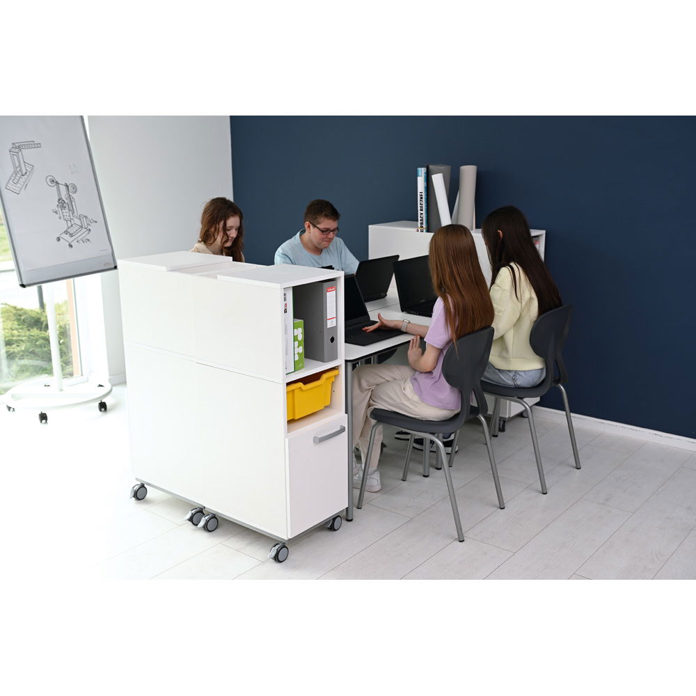Verwandeln Sie statische Arbeitsplätze in dynamische Lernumgebungen. Die leichtgängigen Rollen ermöglichen es, den Stauraum jederzeit neu zu positionieren. Zwei Feststellbremsen garantieren dabei stets einen sicheren Stand, sobald der ideale Platz gefunden ist. - Durchdachte Fächer für jeden Zweck