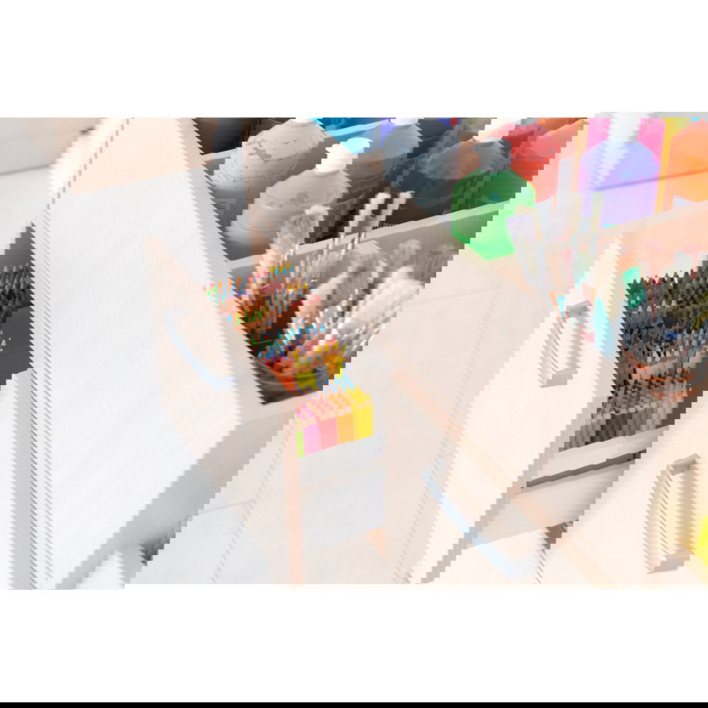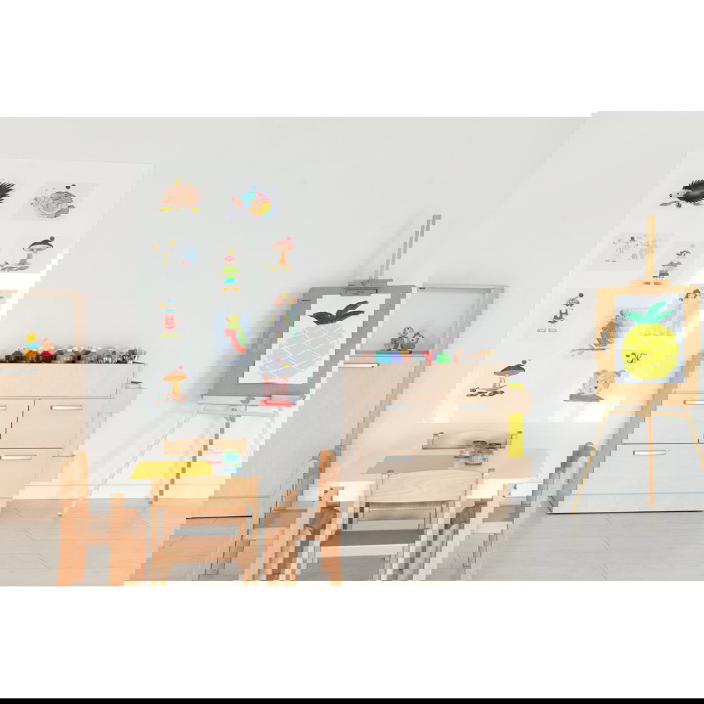 In kreativen Lernumgebungen geht es oft lebhaft zu. Die kratzfeste Oberfläche der laminierten Spanplatte ist unempfindlich gegenüber Farbe, Kleberresten oder Stößen und lässt sich leicht reinigen. - Optimale Raumnutzung
