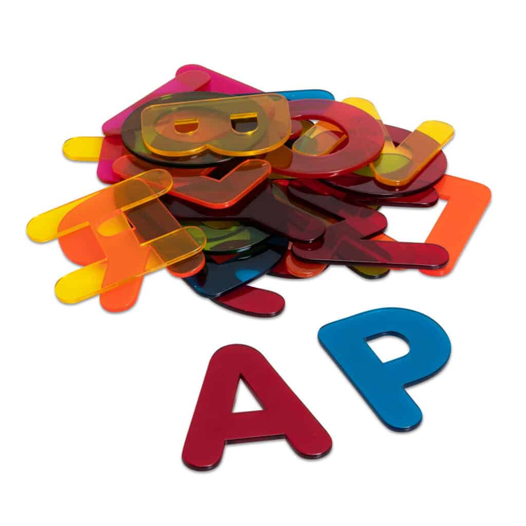 Transparente Kunststoff-Buchstaben für kreatives Lernen