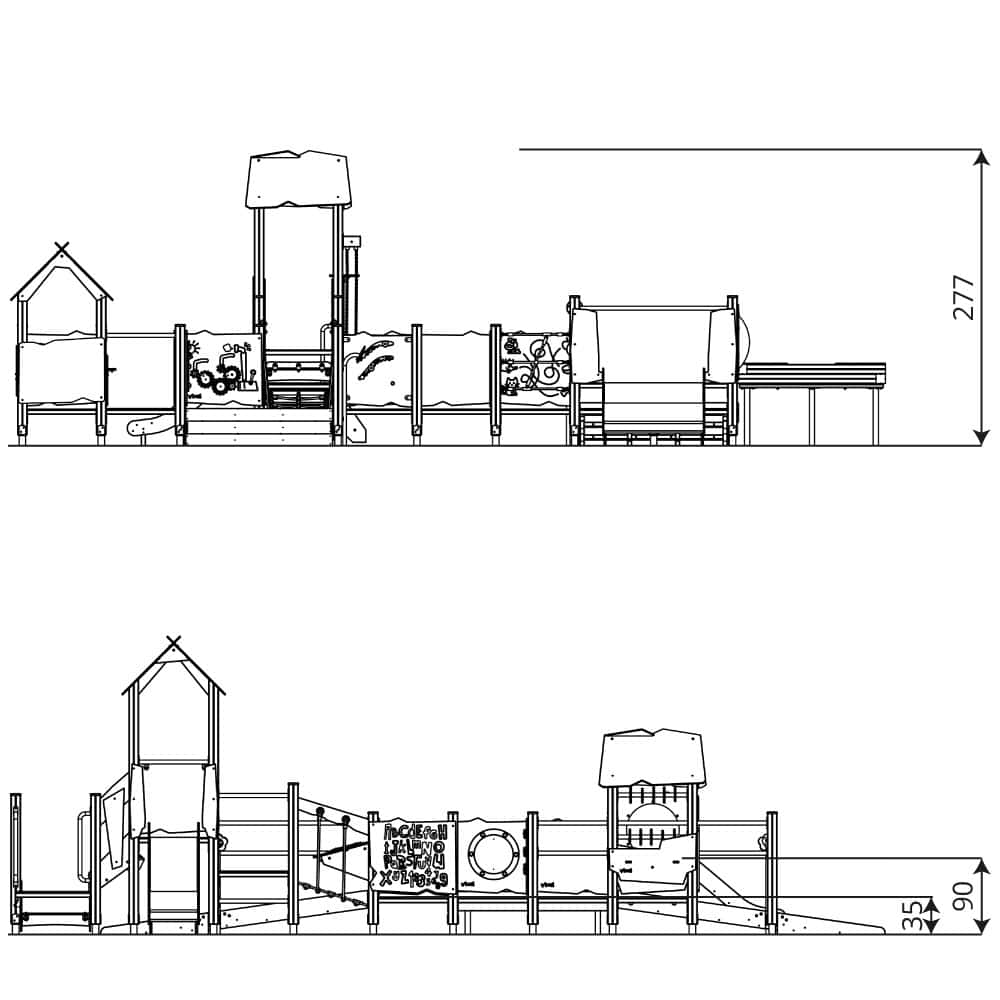 - Pädagogische Paneele und bewegliche Elemente aus HDPE- oder HPL-Platte, witterungsbeständig,