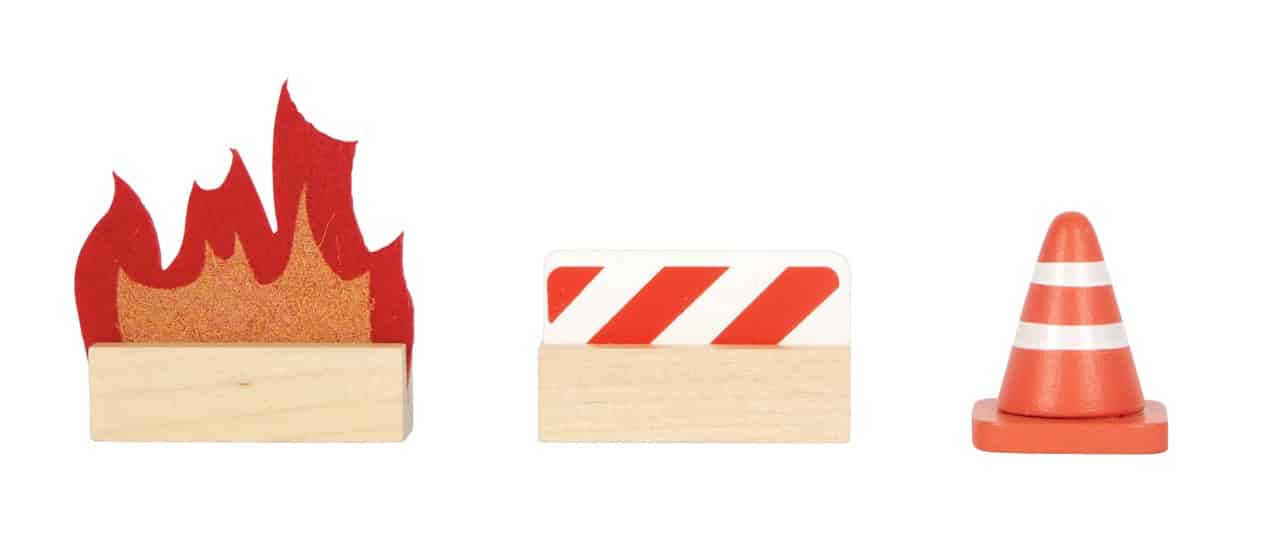 - Zubehör inklusive: Alarmglocke, Hydrant mit Schlauch, Feueraufsteller, Pylonen, Absperrgitter