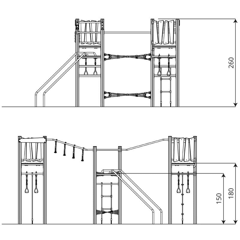 Technische Daten Große Kletterturmanlage mit 4 Türmen – RECYCLED RC1452 von Vinci Play