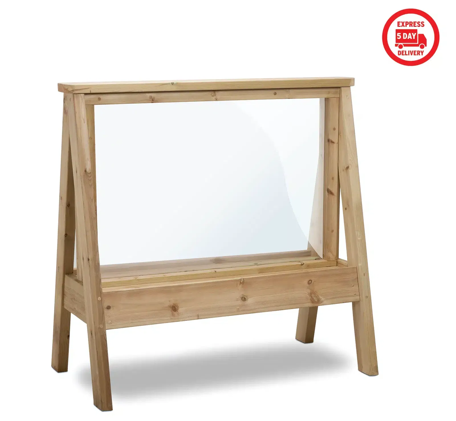 Hergestellt in Großbritannien aus speziell behandeltem Premium-Holz, ist diese Staffelei für den dauerhaften Einsatz im Freien konzipiert. Sie hält Regen und Sonne stand, was durch eine 10-Jahres-Garantie auf das Holz untermauert wird. Die massive A-Rahmen-Konstruktion sorgt für einen felsenfesten Stand, während alle Oberflächen glatt geschliffen und die Ecken sicher abgerundet sind.