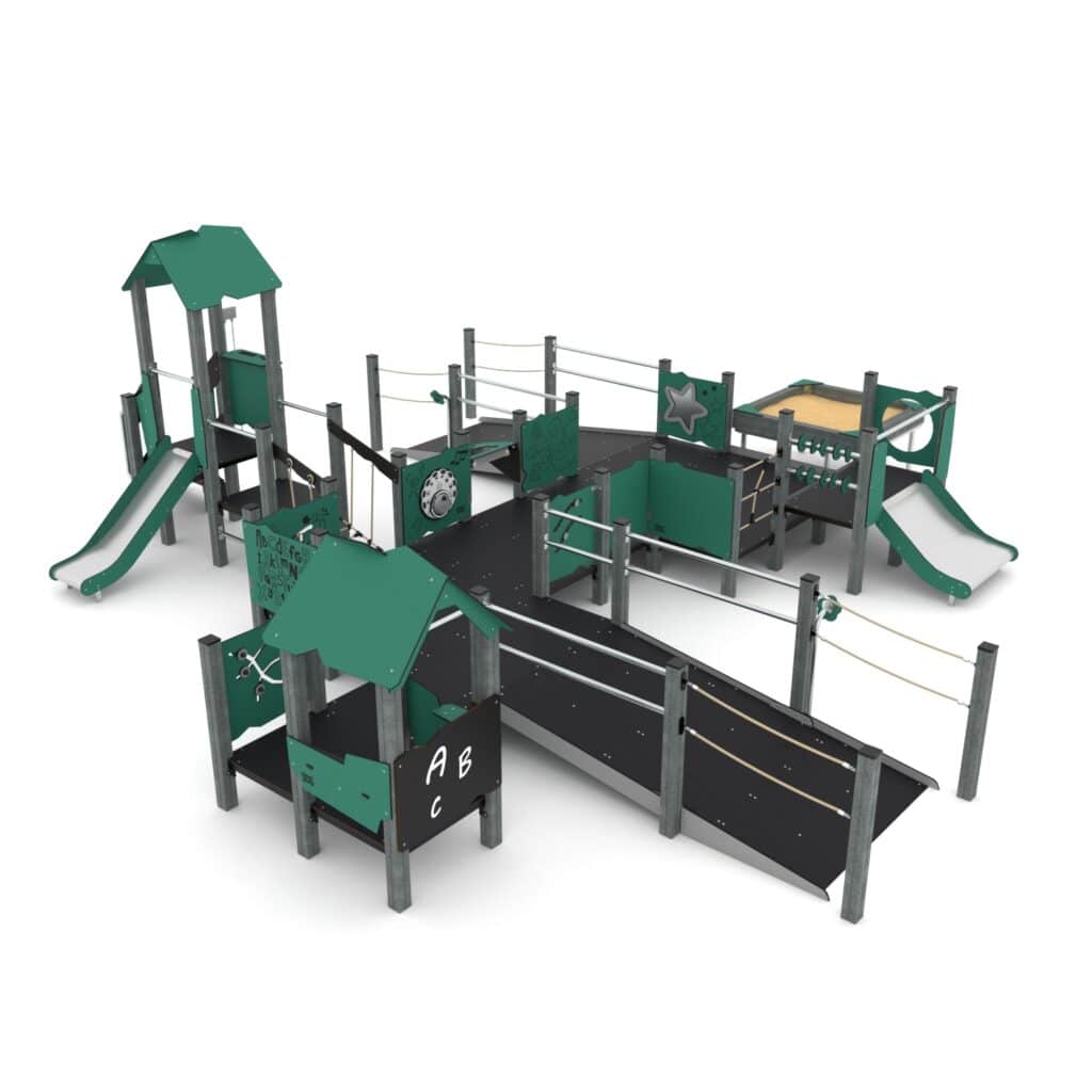 Große Rollstuhlgerechte Spielanlage mit Rutschen, Sandkasten und Plattformen – RECYCLED RC1506 von Vinci Play