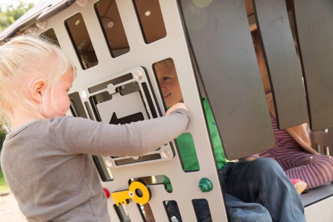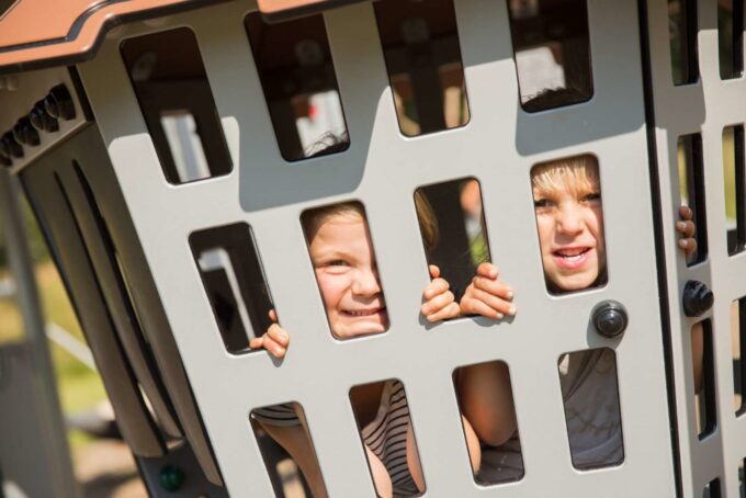 Merlin ist ein großartiger Spielplatz mit mehreren Herausforderungen an die Motorik. Der Kreuzkoordination sowie den Arm- und Beinmuskeln der Kinder wird einiges abverlangt, wenn sie über die schwingenden Brücken laufen, durch den Netztunnel kriechen, das Kletternetz erklimmen oder sich an den Griffen zwischen den Türmen entlanghangeln. Bewegungen in der Körperdiagonale involvieren sowohl Arme als auch Beine und sind besonders wichtig für die natürliche Entwicklung von Kindern. Sie stimulieren die Neuralaktivität zwischen den Hirnhälften und damit das Lernvermögen. Dies ist zum Beispiel auch beim Lesen- und Schreibenlernen wichtig.