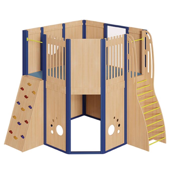 Große Spielburg mit Kletterfelsen und Sprossenwand für Kindergarten, Krippen & Kitas
