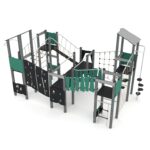 Große Spielturm-Anlage mit Balancierbrücken, Hangelelementen, Kletterelementen und 6 Plattformen – RECYCLED RC1413 von Vinci Play