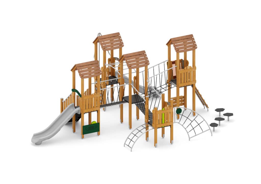 - Produktname: Große Spielturmanlage mit Rutschen, Brücken, Balancier- und Kletterelementen