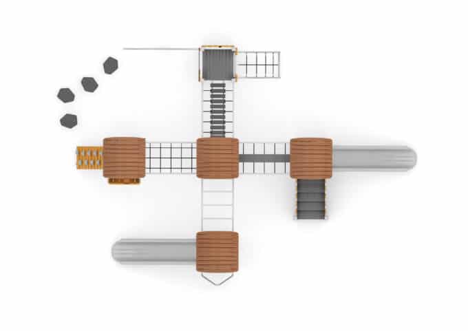 - Kletterelemente & Treppe: Metall / Kiefernholz / WPC